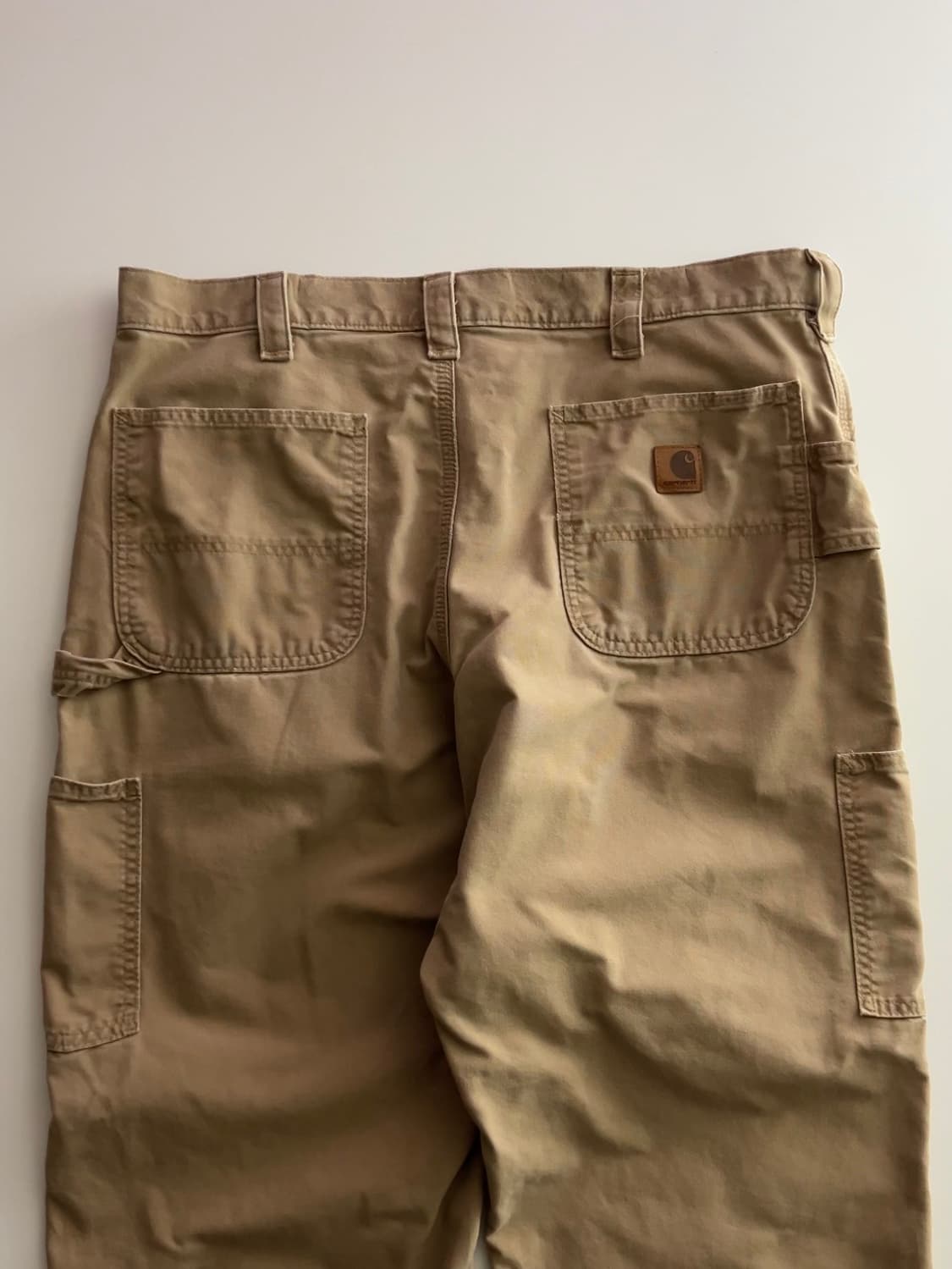 [브랜드 및 제품명] Carhartt B151 DKH Carpenter Pants 칼하트 B151 DKH 카펜터 팬츠 38 [제품 설명] 칼하트의 B151 Loose Original Fit 카펜터 팬츠 다크카키 컬러입니다. 100% 코튼 소재에 전면 좌측 카펜터 루프와 해머 루프, 양 허벅지 측면 포켓, 후면 양쪽 패치 포켓과 우측에 칼하트 레더 로고 패치가 부착되어 있습니다. 전반적인 오염과 사용감이 있으며, 세월이 만들어낸 워싱과 오염이 고스란히 담겨 있어 칼하트 특유의 투박하고 날것 그대로의 워크웨어 감성을 원하는 분께만 추천합니다. ✔️ 관리 및 케어 완료 / 수령 후 바로 착용 가능 ✔️ 표기 사이즈: 38 x 30 ✔️ 실측 (cm): 허리 47 / 엉덩이 59 / 허벅지 37 / 밑단 25 / 밑위 33 / 총장 105 ✔️ 상태: 8.0 / 10 (오염 및 사용감 있음) 💸 89,000원 🚚 배송비 별도 +3,000원 (제주 및 도서산간 +6,000원) ❗️구제 상품 특성상 교환·환불 불가 ❗️모든 사진 및 콘텐츠는 빈티지콩츄가 직접 촬영·제작한 자료이며, 무단 사용을 금합니다.