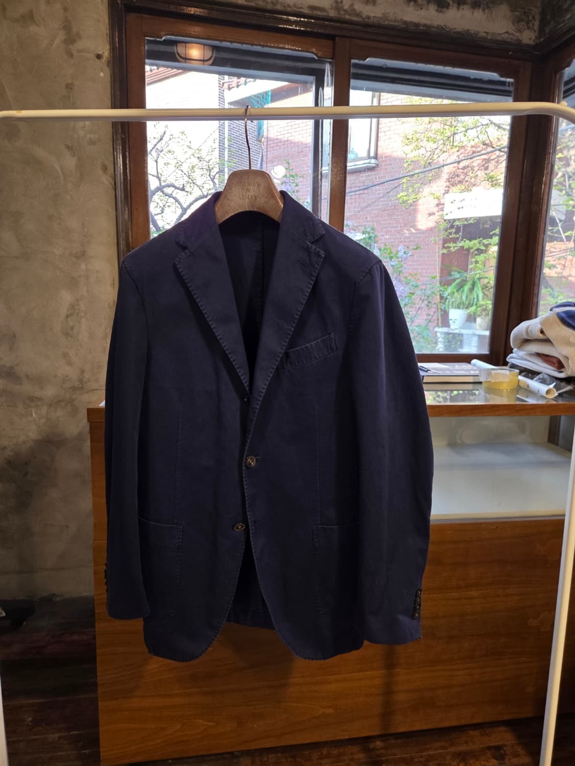 언컨스트럭처로 재단된 볼리올리의 옛 모델입니다. 나폴리 테이스트를 대중적으로 확장시킨 테일러드 브랜드의 본진으로 현행의 볼리올리와는 나아가는 노선 자체가 다른 만듦새 훌륭한 제품입니다. 100만원대 리테일가로 이 정도의 퍼포먼스를 보여주는 브랜드 지금도 드물어요. 사이즈 44 국내 95 추천합니다. 밀도감 높은 코튼의 질감하며 탁성으로 낸 로얄블루의 경쾌한 컬러감은 실루엣의 낭창거리는 펄럭임과 근사한 조화를 드러냈습니다. 감사합니다.