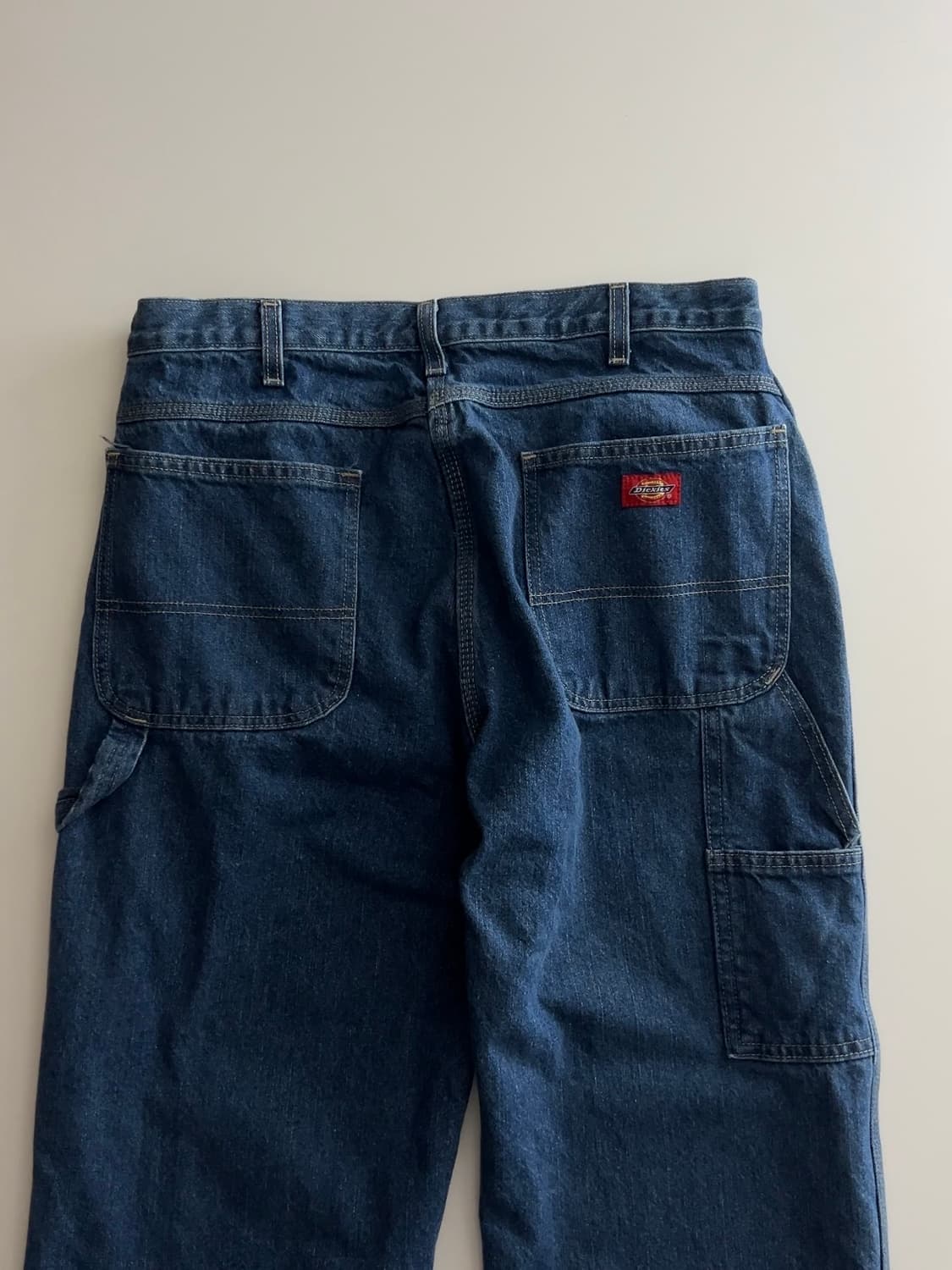 [브랜드 및 제품명] Dickies Carpenter Denim Pants 디키즈 카펜터 데님 팬츠 36 [제품 설명] 디키즈의 카펜터 데님 팬츠입니다. 100% 코튼 소재에 인디고 블루 컬러로, 전면 좌측 카펜터 루프, 양 허벅지 측면 포켓, 후면 양쪽 대형 패치 포켓과 우측에 디키즈 레드 로고 패치가 부착되어 있습니다. 루즈한 실루엣과 워크웨어 특유의 투박한 디테일이 캐주얼한 빈티지 무드를 자아내는 아이템입니다. ✔️ 관리 및 케어 완료 / 수령 후 바로 착용 가능 ✔️ 표기 사이즈: 36 x 32 ✔️ 실측 (cm): 허리 43 / 엉덩이 57 / 허벅지 35 / 밑단 23 / 밑위 20 / 총장 108 ✔️ 상태: 8.5 / 10 💸 75,000원 🚚 배송비 별도 +3,000원 (제주 및 도서산간 +6,000원) ❗️구제 상품 특성상 교환·환불 불가 ❗️모든 사진 및 콘텐츠는 빈티지콩츄가 직접 촬영·제작한 자료이며, 무단 사용을 금합니다.
