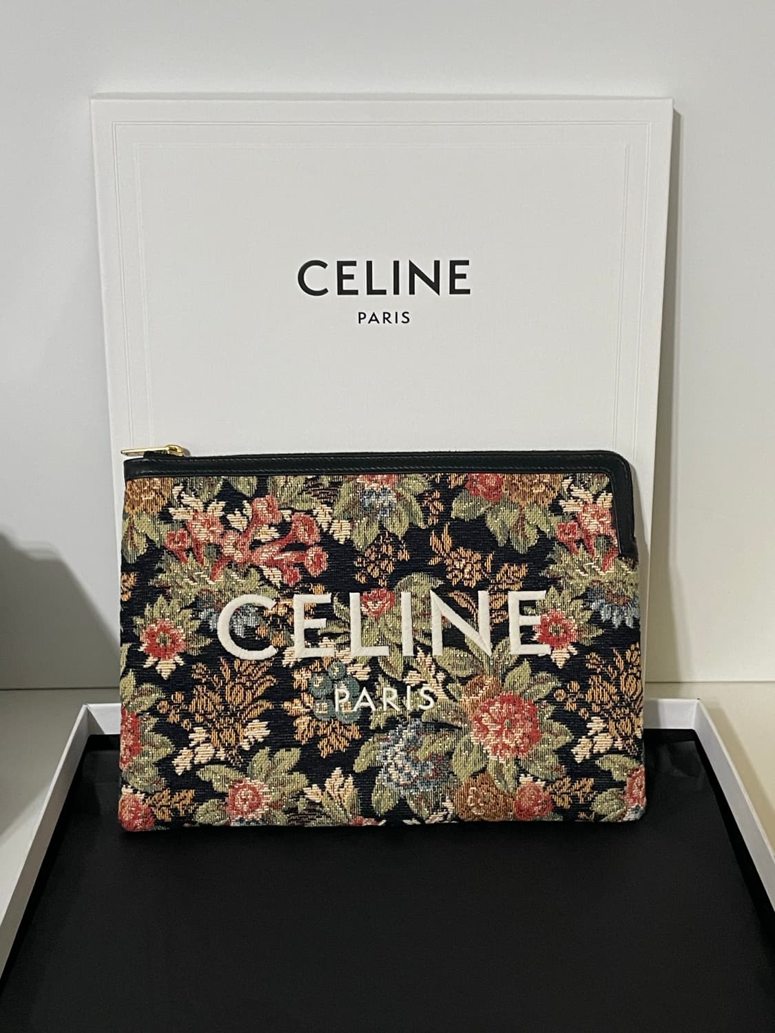 20ss 시즌 셀린느 플라워 자수 파우치입니다. 인천공항 면세점 셀린느 매장에서 구매했고, 박스 풀셋 그대로 보내드립니다. 구매 후 한 번도 착용하지 않고 보관만 해서 거의 새상품이나 다름없습니다.