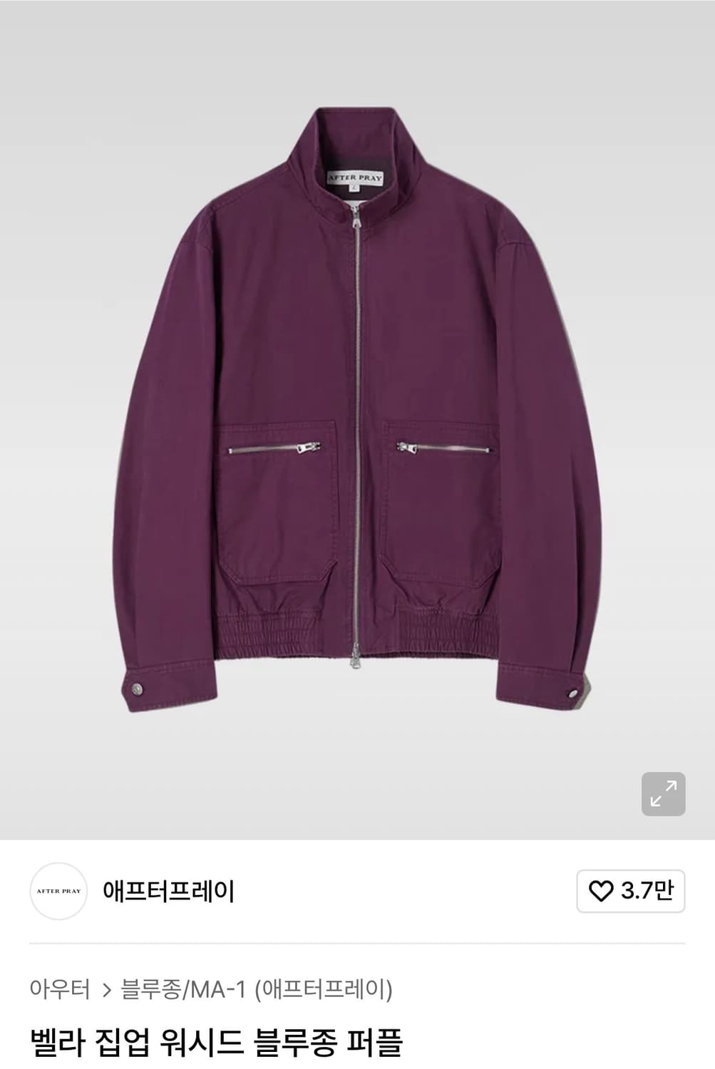 에프터프레이 벨라 집업 워시드 블루종 퍼플 M