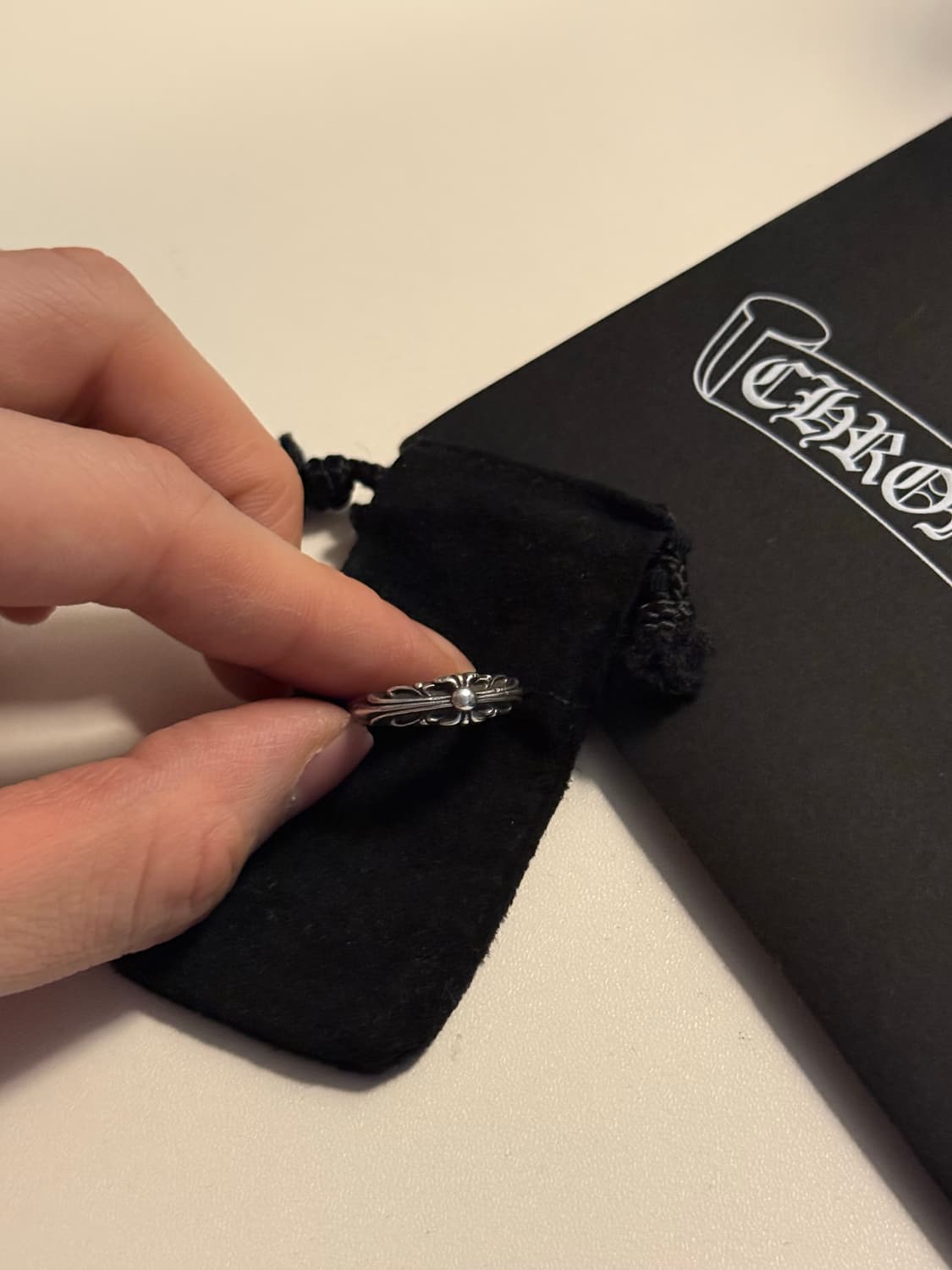 크롬하츠 베이비 플로랄 링 (US 5) 판매합니다 뉴욕에서 구매했고 구하기 힘든 디자인 사이즈 입니다. 장시간 착용하지 않아 판매하려고 합니다. 영수증 쇼핑백 더스트백 포함이고 세척이 안 되어 있어 구매시 폴리싱천도 같이 넣어 드릴게요