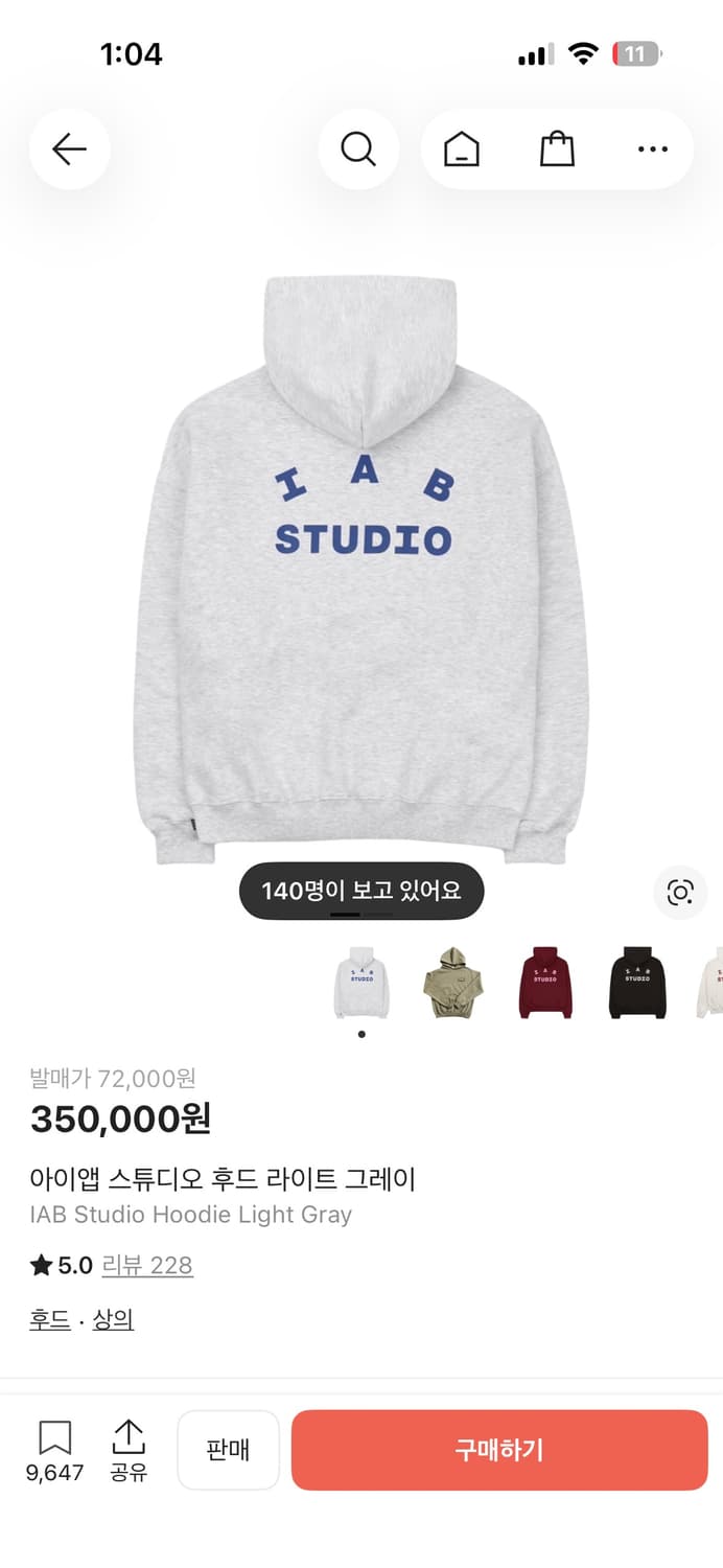 • [M] IAB Studio 25 Hoodie Light Gray 새상품