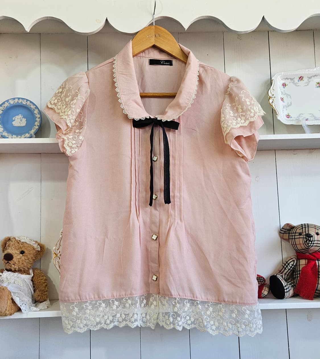 Coboi 레이스 리본 블라우스 핑크 컬러에 레이스 디테일이 풍성하게 들어간 러블리 블라우스입니다. 카라, 소매, 밑단까지 이어지는 레이스 포인트에 블랙 리본까지 더해져 히메갸루 느낌 나는 빈티지 무드 제대로 살아있는 아이템이에요. 부드러운 소재감으로 착용감 좋고 어디에나 매치 잘 되는 활용도 높은 스타일입니다. 실측 가슴 45 기장 59 표기사이즈 M (바스트 79-87 / 신장 154-162) 소재 폴리에스터 100% 레이스/리본 부분 폴리 소매/밑단 레이스 나일론 혼방