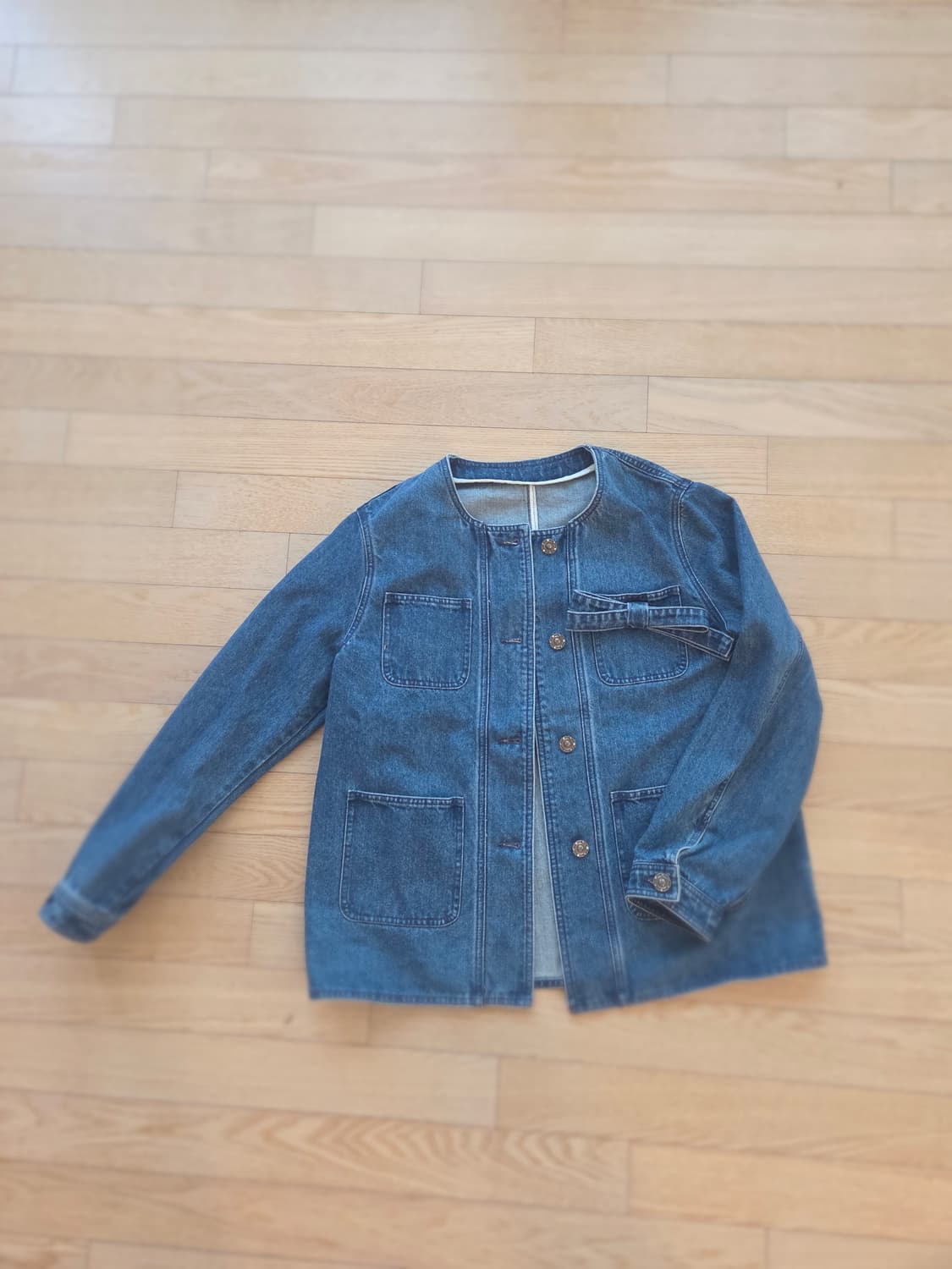 사이즈 55이고 택없는 비품이구요. 주머니에 리본이 원래 단추구멍인데 단추구멍이 없이 박음질 되잇어요. 이게 낫더라구요 덜렁거리는것보단 단추가 이뻐서 캐주얼 정장 다 이뻐요. 가로 52 세로 63 문자부탁드려요. 01034976587 배송비 제가부담해서 보내고 바로 송장 보내드릴께요.