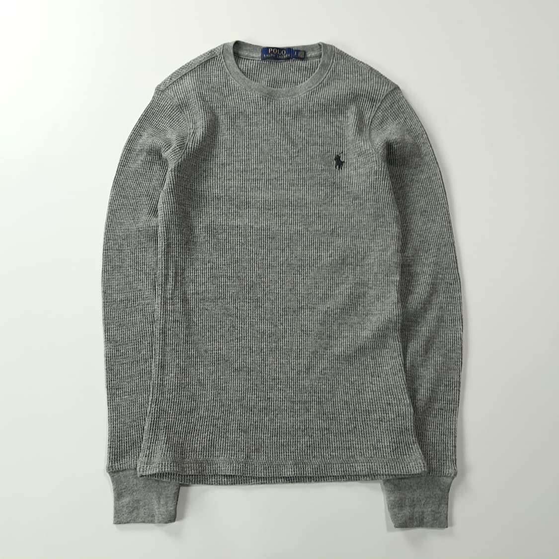 ㅡㅡㅡㅡㅡㅡㅡㅡㅡㅡㅡㅡㅡㅡㅡㅡㅡㅡㅡㅡ 군용 방한복에서 프레피의 상징이 된 그레이 써멀 와플 티셔츠 ㅡㅡㅡㅡㅡㅡㅡㅡㅡㅡㅡㅡㅡㅡㅡㅡㅡㅡㅡㅡ PRODUCT DETAILS • 2010년대 중반 ~ 2020년대 초반 Cambodia 생산 Blue Label • 소재: 면 100% • 좌측 가슴 블랙 포니 로고 자수 • 넥라인 내부 헤링본 테이프 보강 • 소매단 립(Rib) 마감 • 컬러: 그레이 SIZE 총장 63cm / 어깨 35cm / 가슴 38cm / 팔 62cm 표기: S/P (남녀공용) 가슴 38cm 기준 핏 가이드: • 남성: 권장하지 않음 (매우 슬림한 핏) • 여성: XS - 44 사이즈 마른 체형에 적합 CONDITION 전반적으로 우수한 컨디션을 유지하고 있습니다. STYLING TIPS 프레피와 아이비리그 문화에서 써멀은 옥스퍼드 셔츠나 럭비 셔츠 안에 겹쳐 입어 '운동선수의 방한복' 같은 분위기를 연출하는 핵심적인 레이어드 피스입니다. 화이트 옥스퍼드 셔츠를 레이어드하고 차콜 컬러의 울 슬랙스를 매치해 보세요. 여기에 로퍼를 더하면 정통 프레피 룩을 손쉽게 완성하실 수 있습니다. ㅡㅡㅡㅡㅡㅡㅡㅡㅡㅡㅡㅡㅡㅡㅡㅡㅡㅡㅡㅡ • 빈티지 특성상 발견 못한 오염 및 데미지가 있을 수 있습니다. • 예민하신 분들은 구매를 삼가 주세요. • 빈티지 특성상 재고는 하나입니다. • 바루사는 엄선된 빈티지 상품만 취급합니다. • 빈티지 상품 특성상 교환/환불/반품이 불가합니다. #BARUSA #바루사 #빈티지