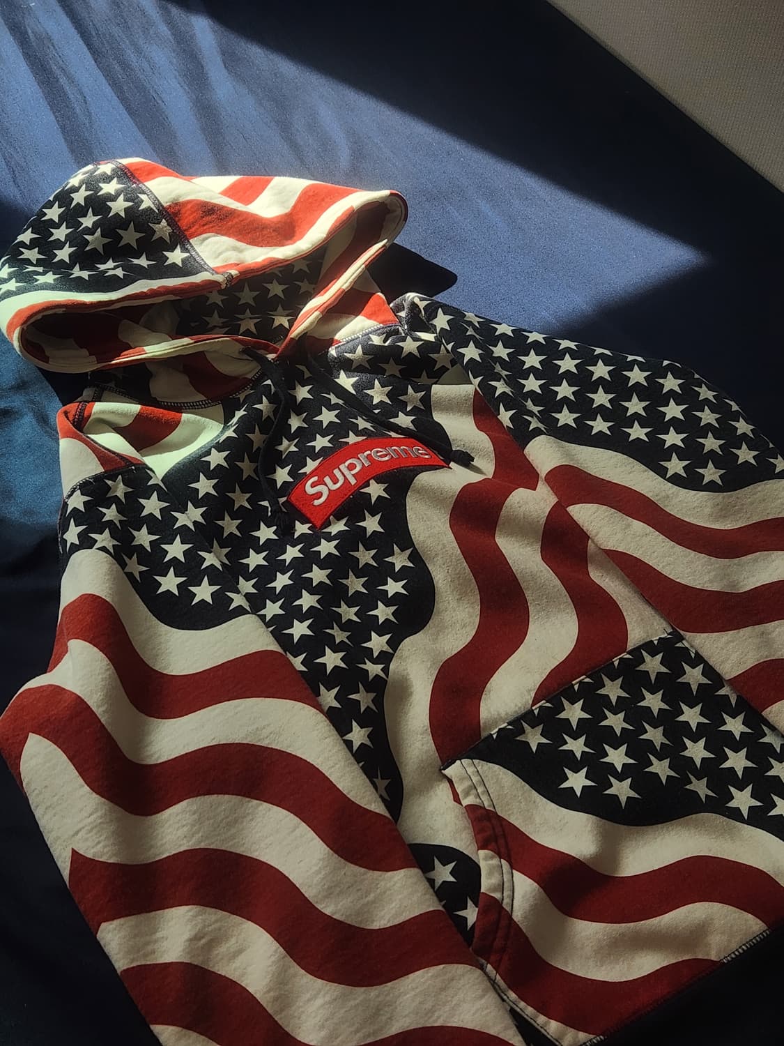 슈프림 15FW 와플 사이드 로고 후드티 네이비 M사이즈