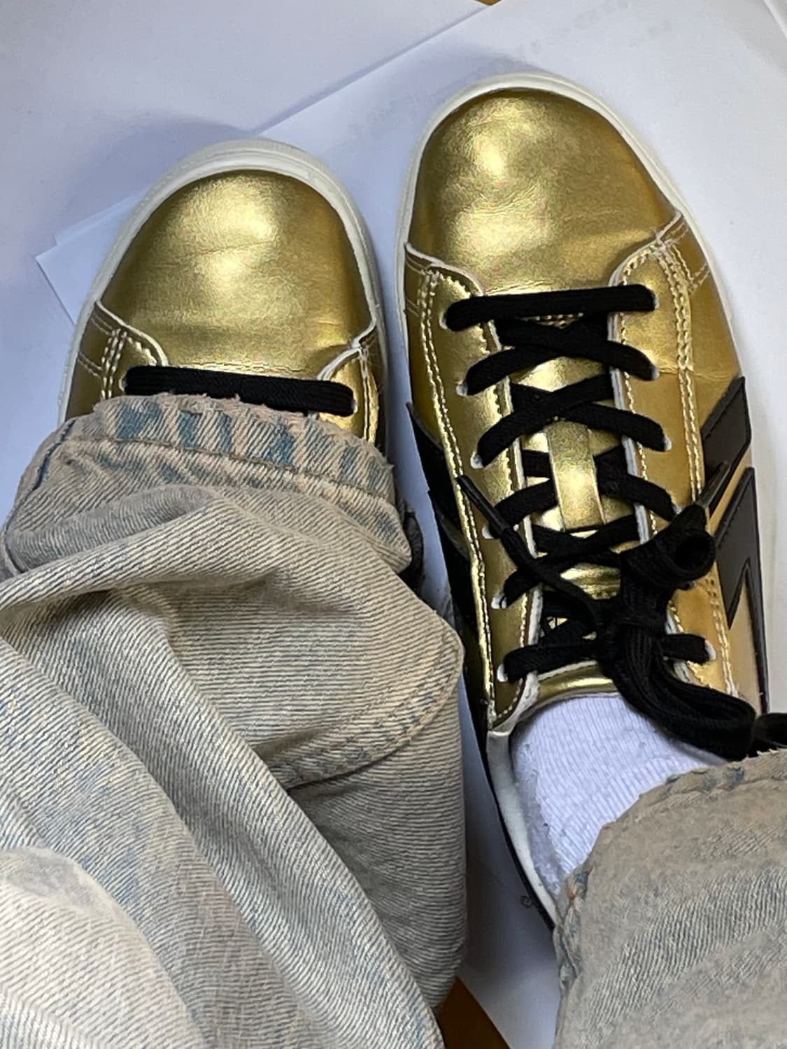골드색상으로 포인트주기 좋으며 발편한 콜카 스니커즈 230 해외 이주 예정으로 판매합니다. 5회내외 실착해서 오염하자없이 컨디션 좋습니다!