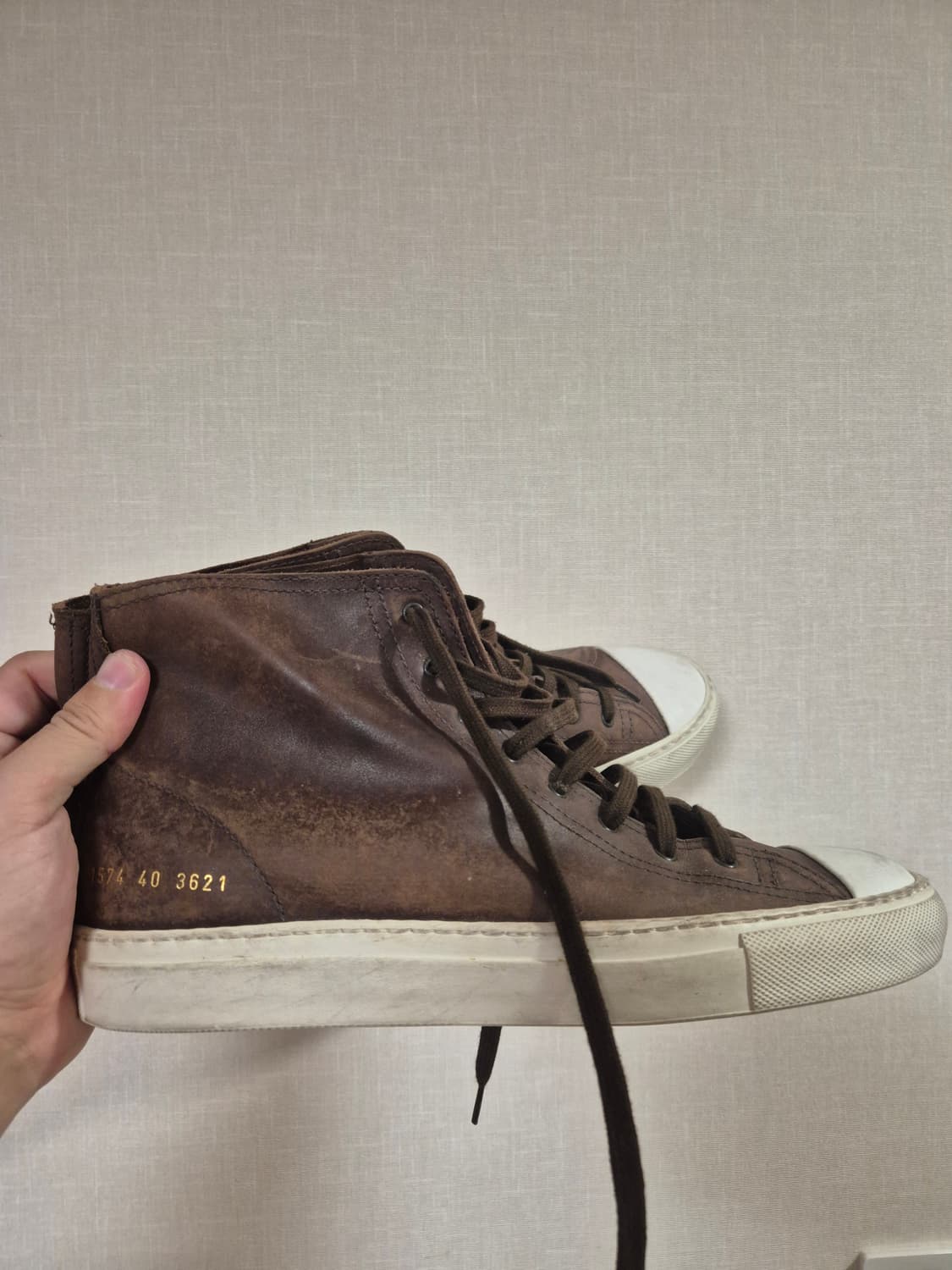 커먼프로젝트의 레더 하이탑 제품입니다. 착용을 많이 하진 않았지만 아웃솔/밑창이 사용감이 있습니다. 사진 참고해 주세요. - 편의점 택배 이용합니다. 우체국 택배는 불가합니다. - 네고 또는 교신요청 시 즉각 차단합니다.