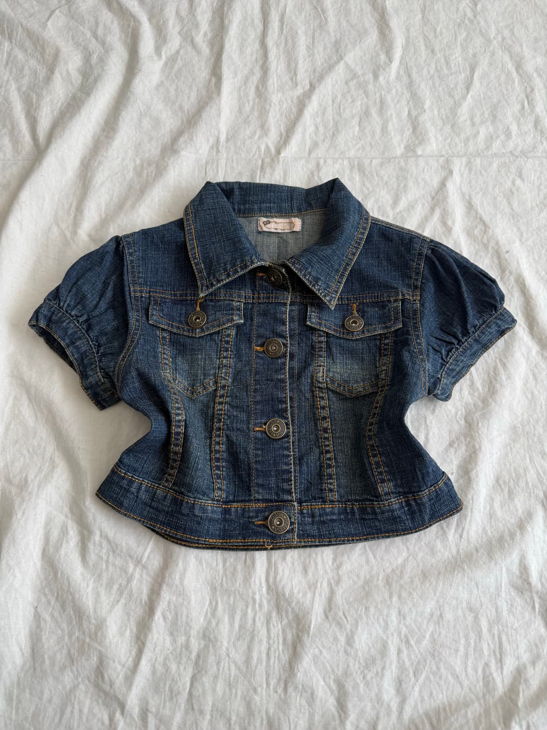 • 택지참 TRALALA 트랄라라 리본 레이스 반팔 데님 자켓 오네히메갸루룩