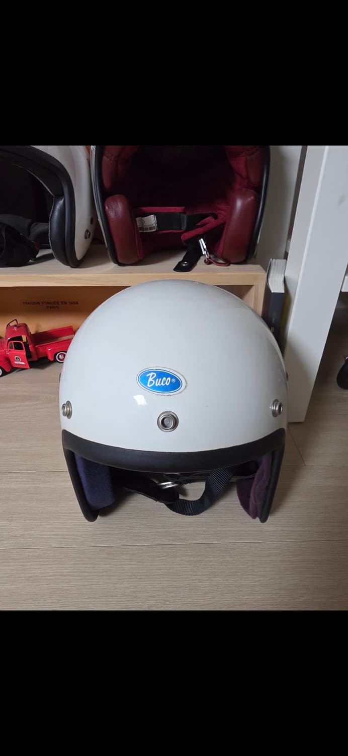 부코 화이트 빈티지 헬멧 판매합니다. 클래식한 디자인으로, 실착 횟수 적어 상태 좋습니다. 평소 바이크 즐겨타시는 분들께 추천드려요! 별도 문의 없으시면 바로 안전결제 부탁드려