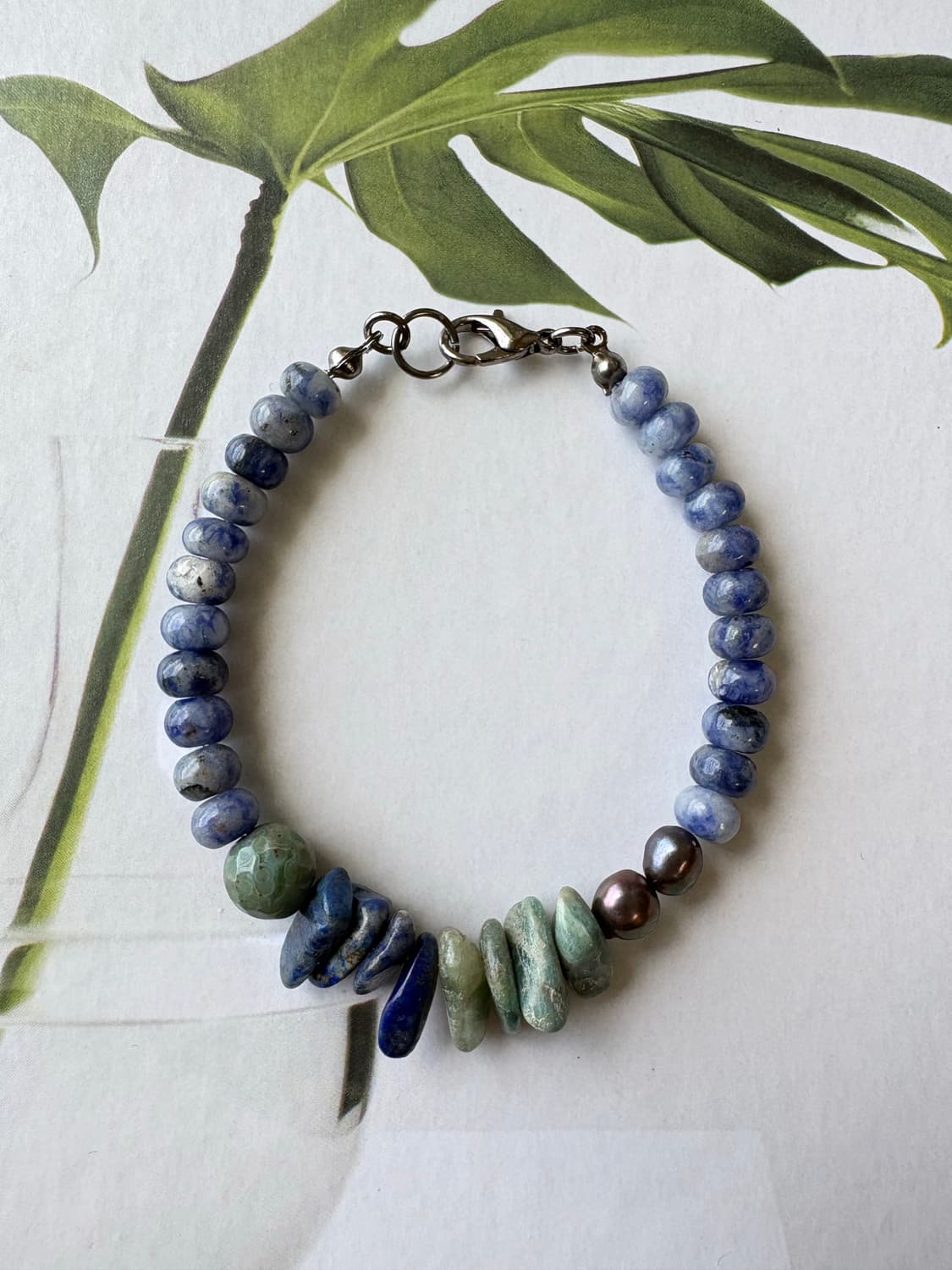 ✔ 차분한 블루톤 원석으로 부담 없이 데일리 착용 가능 ✔ 자연스럽게 어울리는 컬러 조합으로 어떤 코디에도 매치 쉬움 ✔ 은은한 포인트로 과하지 않게 분위기 살려주는 디자인 천연 원석 믹스, 흑진주 사용 총길이 18cm 팔찌길이 14cm ⚡️당일 발송 가능⚡️ 길이는 문의주시면 조정가능합니다 (1~2cm) 100% 핸드메이드 팔찌입니다 부자재는 서지컬스틸, 우레탄줄 사용했습니다 *핸드메이드 특성상 교환, 환불 불가합니다* 실 제작 제품으로 약간의 형태·간격 차이가 있을 수 있습니다. 불량이 아닌 점 양해 부탁드립니다.