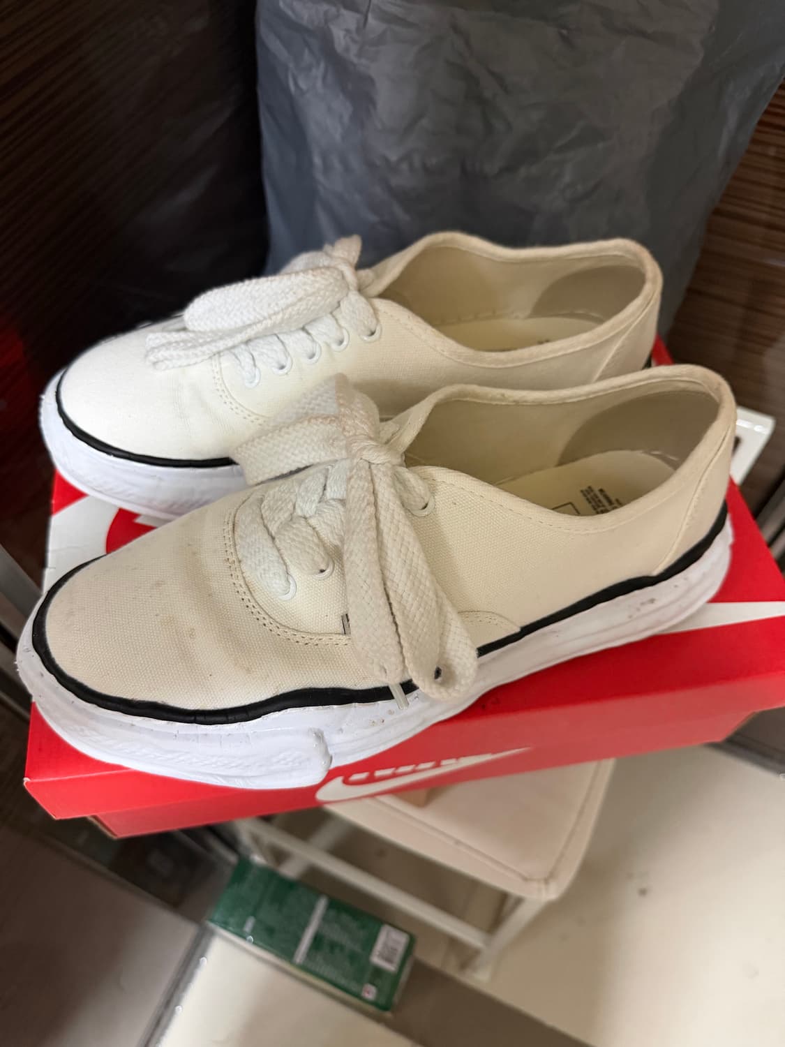 • 메종 미하라 야스히로 MMY 솔 캔버스 로우탑 스니커즈 내츄럴 42