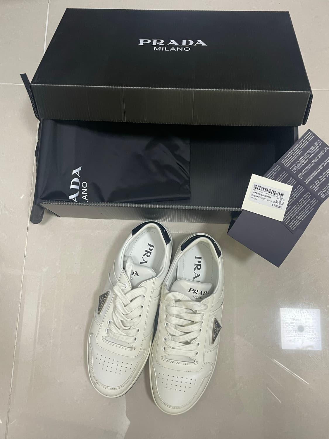 프라다 화이트 스니커즈 37사이즈 판매합니다. 최상의 상태고 풀세트로 보관하고 있습니다. 깔끔한 흰색 스니커즈라 어디든 잘 어울립니다. 별도 문의 없으시면 바로 안전결제 부탁드려요!