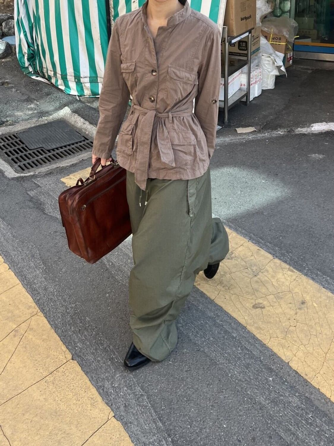 *4월 중순이 마무리되고 새로운 출발을 위해 가볍게 입기 좋은 2가지 제품을 이벤트로 선보이며, 추후 가격변동 있습니다. Pocket jacket 정확도를 위해 반드시 사진을 클릭하여 확인바랍니다. 부드러우면서도 바스락거리는 소재감으로 고밀도 천이 사용되었으며, 다양한 포켓 및 허리끈은 편리에 따라 제거할 수 있도록 디자인되었습니다. 빈티지특성상 약간의 사용감존재할 수 있습니다. model 171/60 condition 9/10 size 어깨40 가슴48 소매62 총기장67