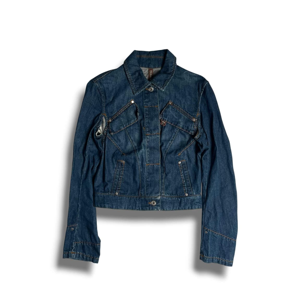 Sportmax slit denim jk 입니다. 크롭한 기장에 긴 슬리브, 사이드 부분 슬릿 디테일이 있는 데님 자켓 입니다. 어깨 49 가슴 42 총장 50 팔길이 62