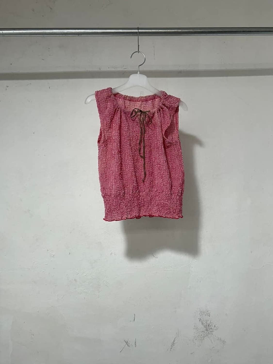 • 일본빈티지 자수 레이스 디테일 밑단 프릴 슬리브리스 블라우스