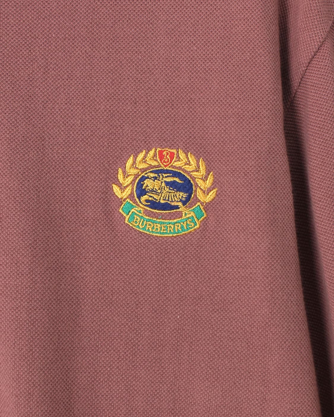 S 버버리 여성용 슬림핏 핑크 카라 반팔 티셔츠
