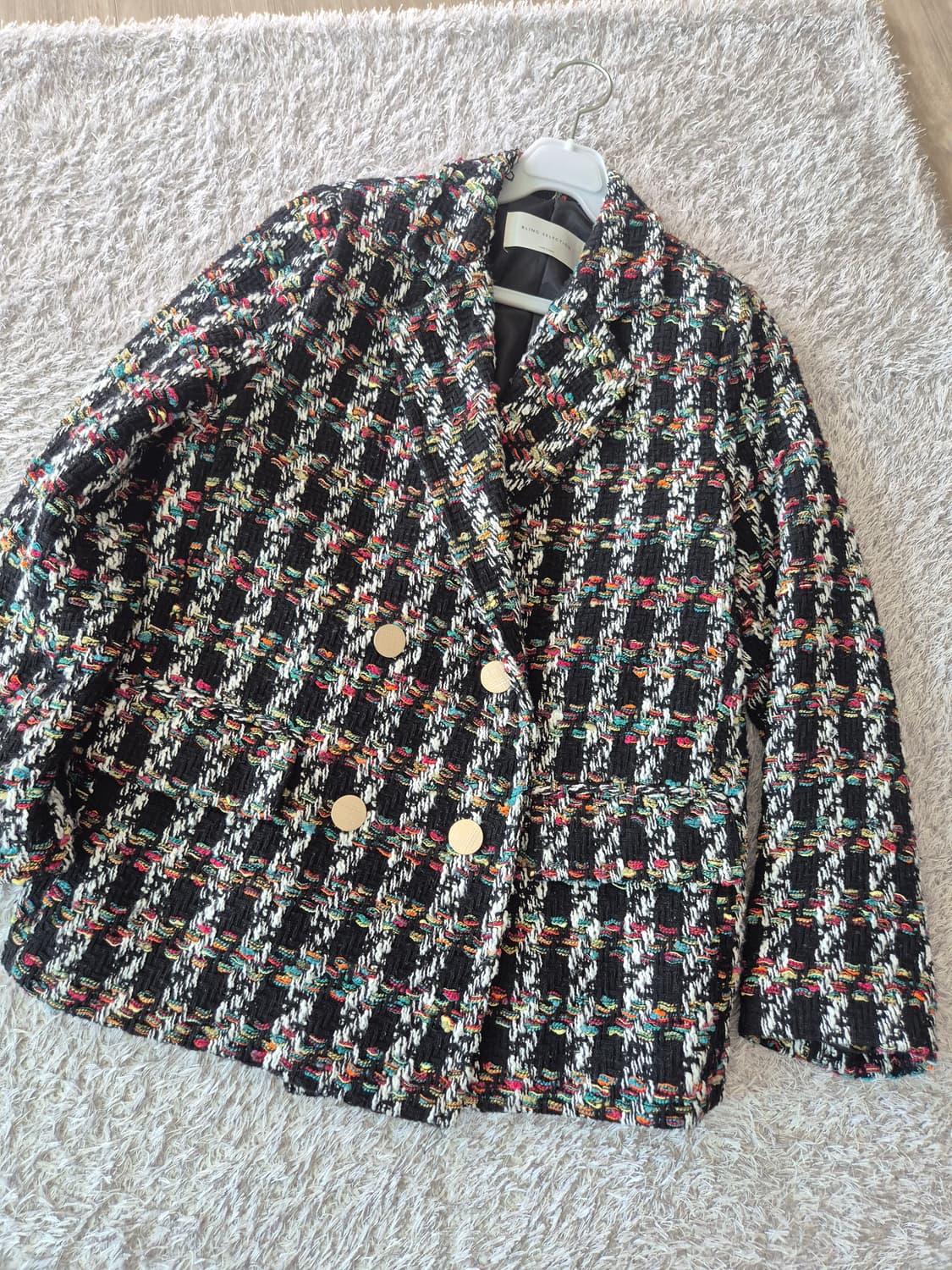 트위드자켓 봄,가을용 프리사이즈로 입는스탈에 따라55~66추천 실측 단추잠그고 가슴단면47 총길이65 컨디션좋아요
