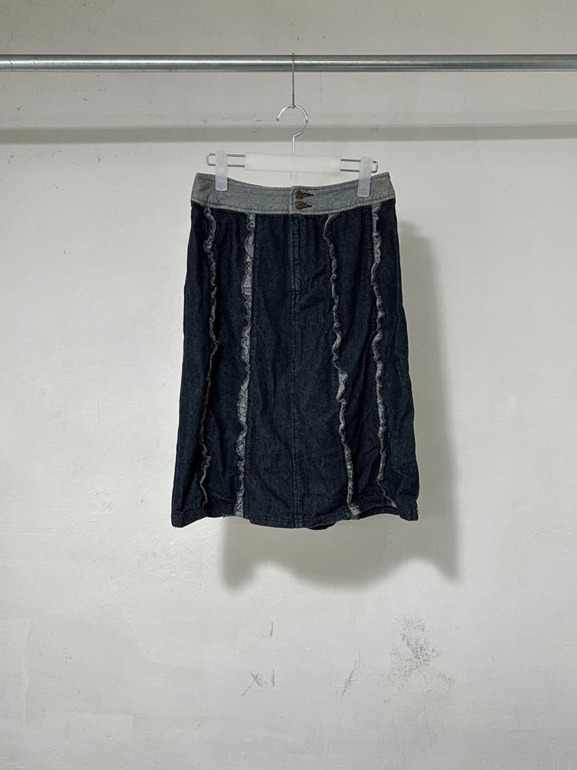 폴로 랄프 로렌 인디고 데님 미디스커트 슬릿 디테일 H라인 진청