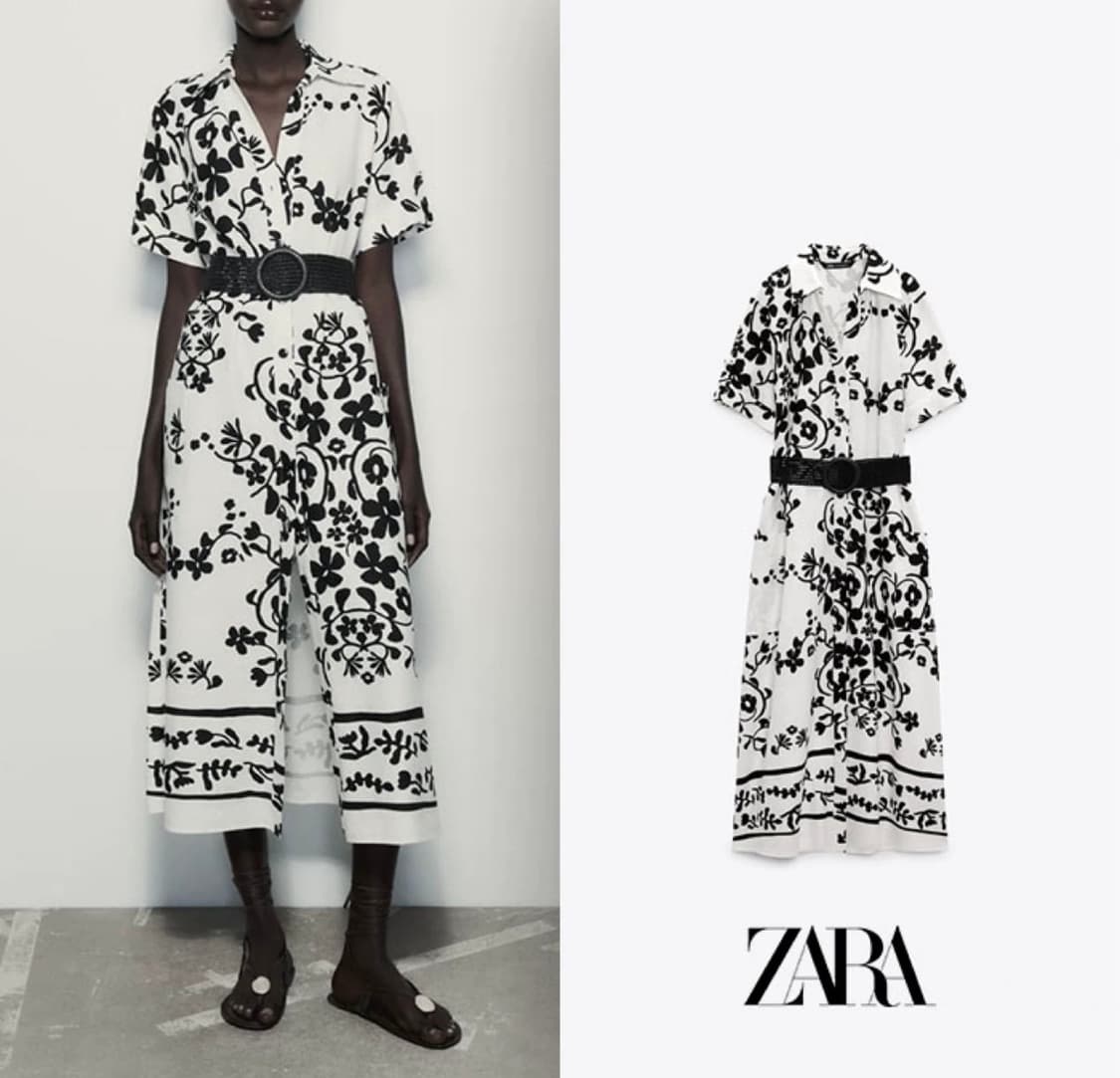 자라 플로럴 셔츠 롱 원피스 S사이즈입니다. 흰색 바탕에 검정색 플로럴 패턴이 눈에 띄는 제품입니다. 허리 벨트가 포인트로 더욱 스타일리쉬하게 연출 가능한 너무 예쁜 휴양지용 여름 원피스입니다. 촬영용으로 구입하여 실착 한두번내외로 입고 드라이해서 보관만하여 컨디션이 매우 좋고 깨끗한 상품입니다! [제품정보] - 브랜드 : zara - 품번 : 8032/462/070 - 사이즈 : S - 소재 : 비스코스, 린넨 [택배거래] - 반값택배시 +2500원 (GS25/CU 모두 가능) - 일반택배시 +4000원 (편의점 택배로 접수) *반값택배, 일반택배 가능합니다:) *중고거래 특성상 반품 불가합니다