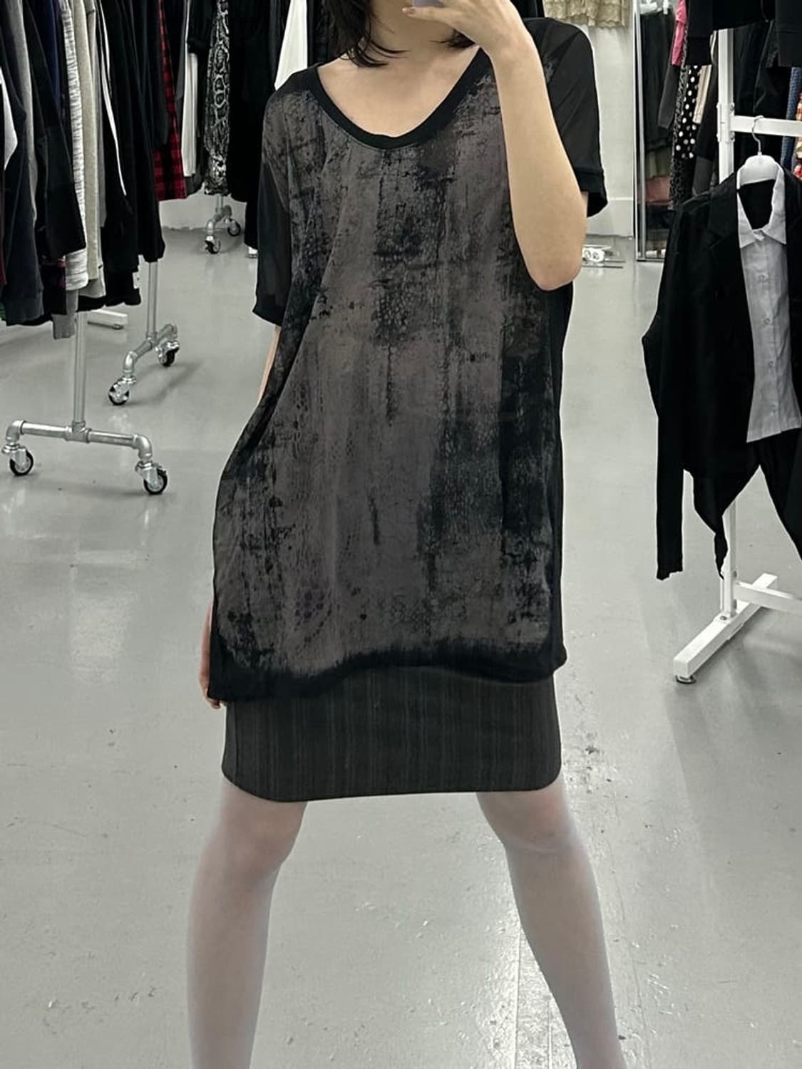 • 빈티지 옐로우 샤크 링거 반팔티M