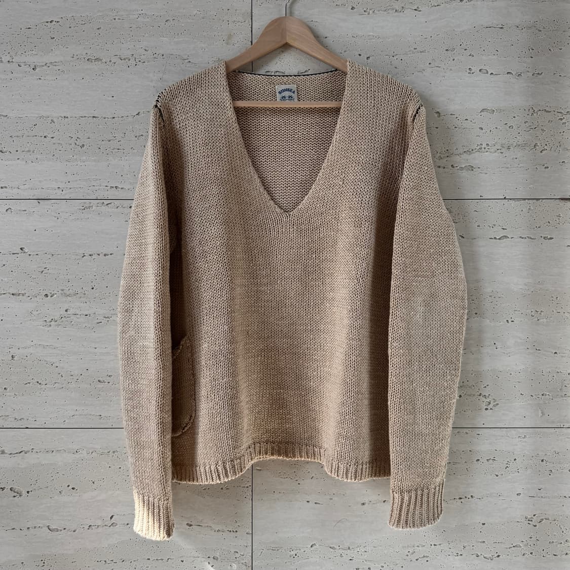 _ SUNSEA Pure Linen V-Neck Sweater Beige Size: 3 상태 좋은 중고