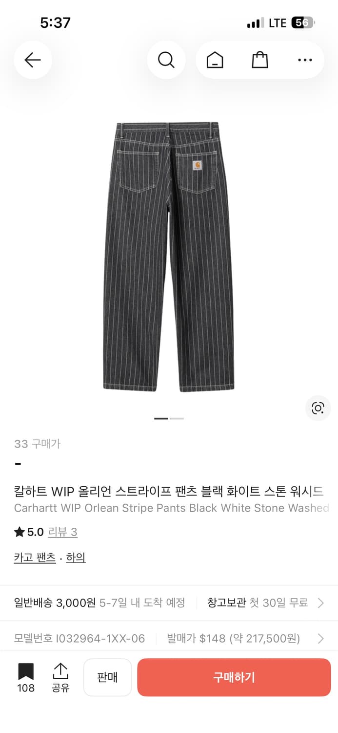 칼하트wip orlean pants black white 삽니다