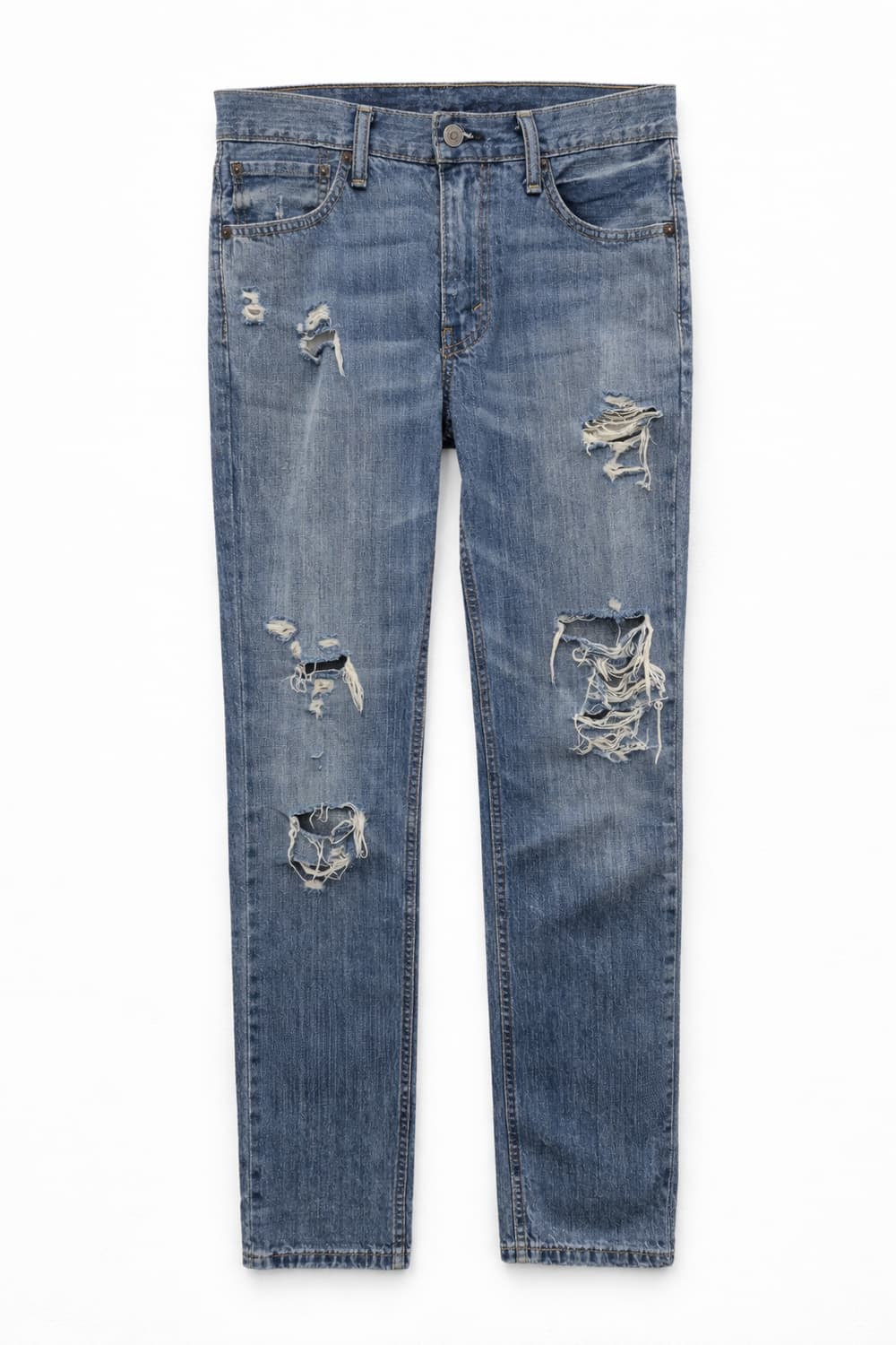 리바이스 511 슬림핏 데미지 청바지입니다. 사진에서 보이는 것처럼 자연스러운 워싱과 디스트로이드 디테일이 매력적인 제품이에요. 편안한 착용감과 스타일리시한 디자인으로 어떤 상의와도 잘 어울린답니다. 캐주얼룩을 즐겨 입으시는 분들께 추천드려요