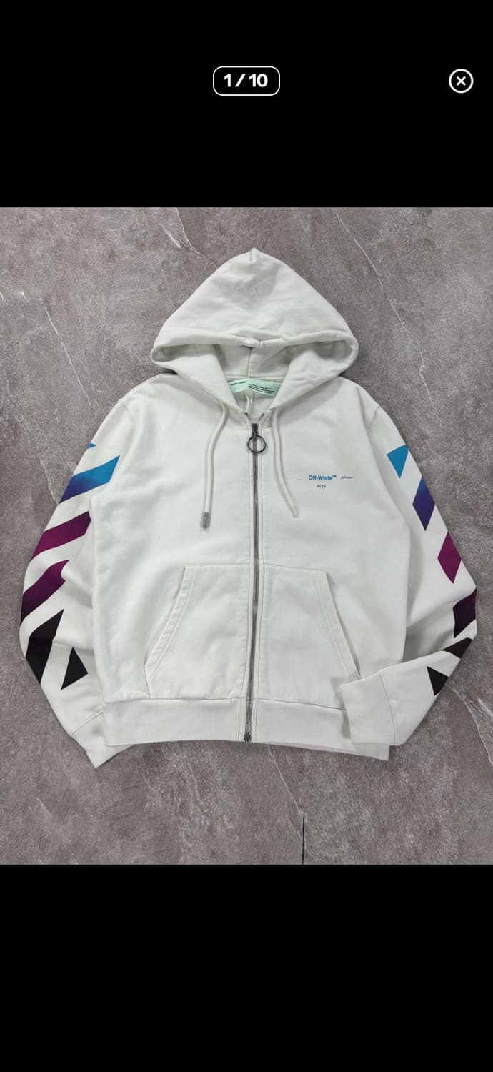 18fw 오프화이트 후드집업입니다 산지 하루도 안됐는데 제 추구미와 달라서 훨씬 싼 가격으로 판매하게 되었습니다 어깨 가슴 총장 소매 49-56-65-68 오차 있을 수 있습니다 표시 사이즈 s