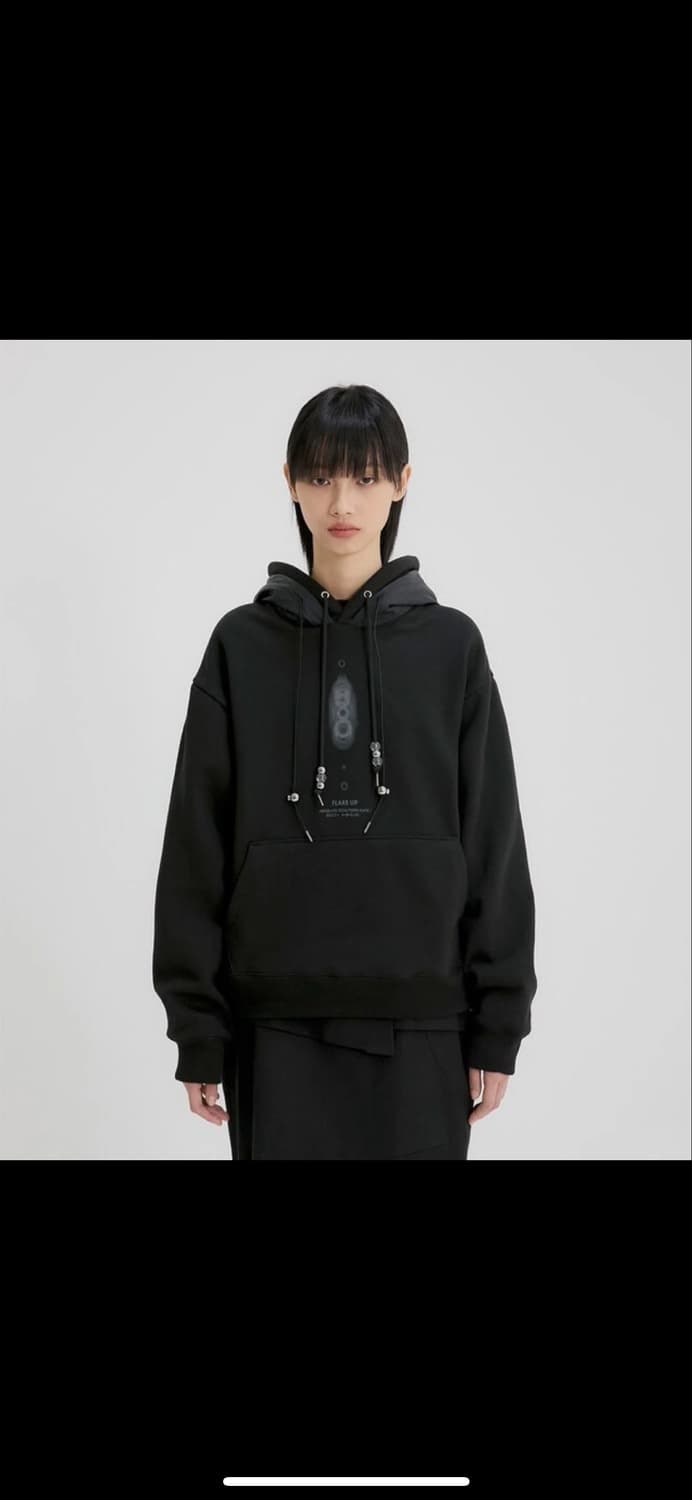 러프넥 헨리 후드 롱 슬리브 탑 블랙 M