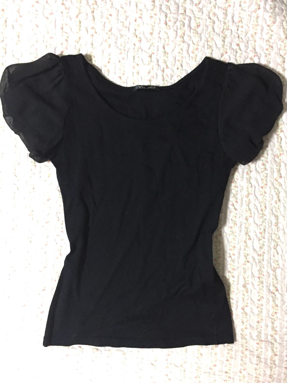 팔 쪽이 쉬폰 소재로 되어있는 티셔츠입니다 ・:*。.+ 다림질해서 보내드려요 ૮˶- ﻌ -˶ა 사이즈 측정에 따라 1~3cm 정도의 차이가 있을 수 있으며, 모니터 해상도 또는 조명에 따라 색상 오차가 있을 수 있습니다. 빈티지 특성상 사용감과 데미지가 존재할 수 있으며 교환, 반품이 불가합니다.