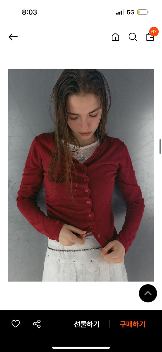 로라로라 셔링 언발란스 가디건 레드컬러입니다.😊 두 번 착용했고 상태 엄청 좋습니다!