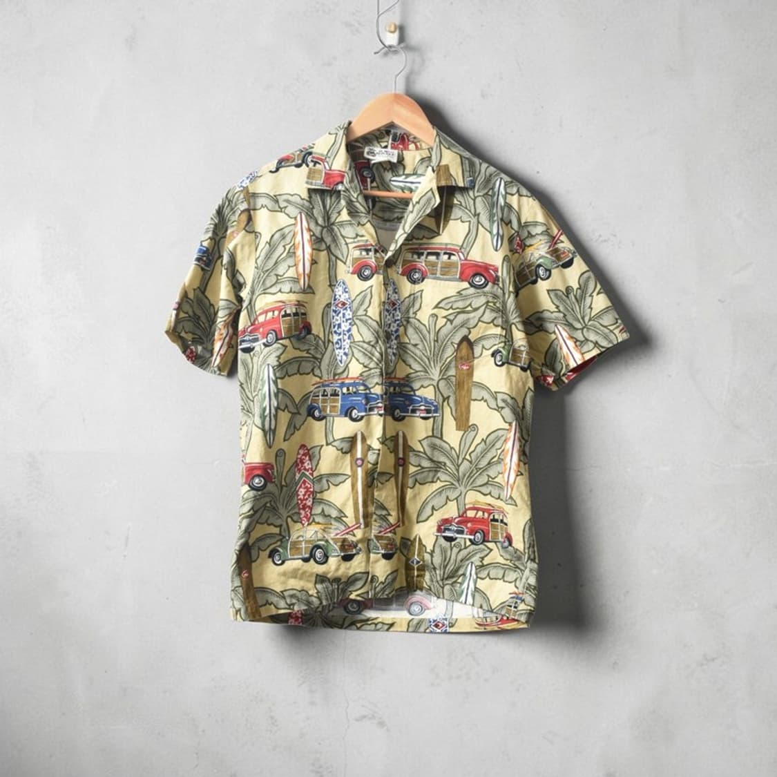 실측 사이즈(cm) 가슴 : 54 어깨 : 48 소매 : 24 총장 : 73 상품설명 ▪ 제품넘버 M0303 ▪ ALOHA REPUBLIC 하와이안 셔츠, 서프보드와 우디카, 야자수 패턴이 전체에 들어간 클래식 알로하 무드의 한 장 ▪ Made in Hawaii U.S.A. 라벨 확인되며, 100% 코튼 소재로 표기되어 있습니다 ▪ 크림 베이스에 올리브 톤 잎사귀와 레드·블루 컬러 포인트가 섞여 있어 빈티지한 휴양지 분위기가 자연스럽게 살아납니다 이 셔츠는 단순히 화려한 하와이안 셔츠라기보다, 오래된 서프 컬처와 로컬 무드가 한 장 안에 잘 정리된 타입입니다. 서프보드와 우디카 같은 요소들이 들어가 있어 흔한 플로럴 패턴보다 훨씬 이야기 있는 느낌으로 보이고, 색감도 과하게 튀기보다는 살짝 바랜 듯한 톤으로 잡혀 있어서 부담 없이 입기 좋습니다. 여름에 쇼츠와 가볍게 매치해도 분위기가 바로 살아나고, 셔츠 하나만으로도 충분히 빈티지한 무드를 만들 수 있는 매력적인 피스입니다.