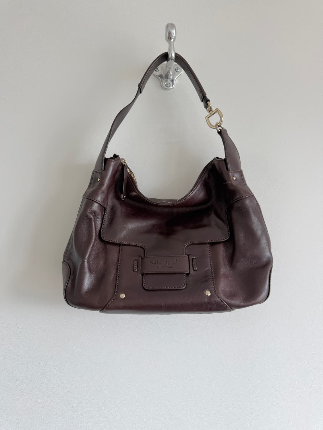 케이트 스페이드(Kate Spade) 레더 숄더백 38,000원 - 실측: 가로40 세로(높이)27 폭10 - 소재: 레더 - 상태: 전반적으로 나쁘지 않은 컨디션, 사용감 있음 - 비고: 표면 스크레치 있음, 전반 사진 참고, 특히 7번 사진 실측은 대략적인 사이즈감을 안내 드리기 위한 것 측정 방법에 따라 약간씩 차이가 있을 수 있습니다.