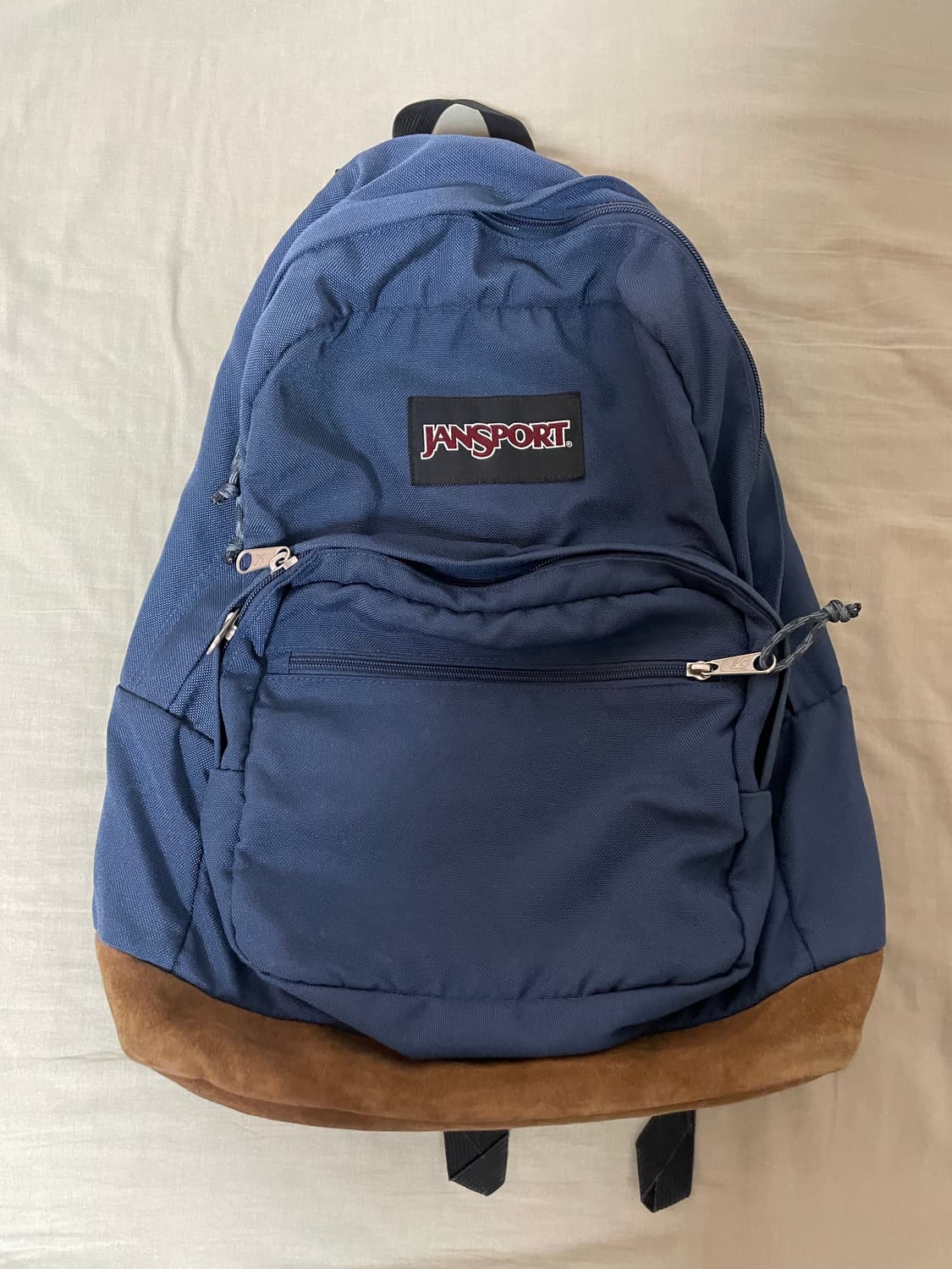 잔스포츠 스웨이드 백팩 네이비 색상 스웨이드 부분에 착용하면서 생긴 사용감있으니 확인해주세요.