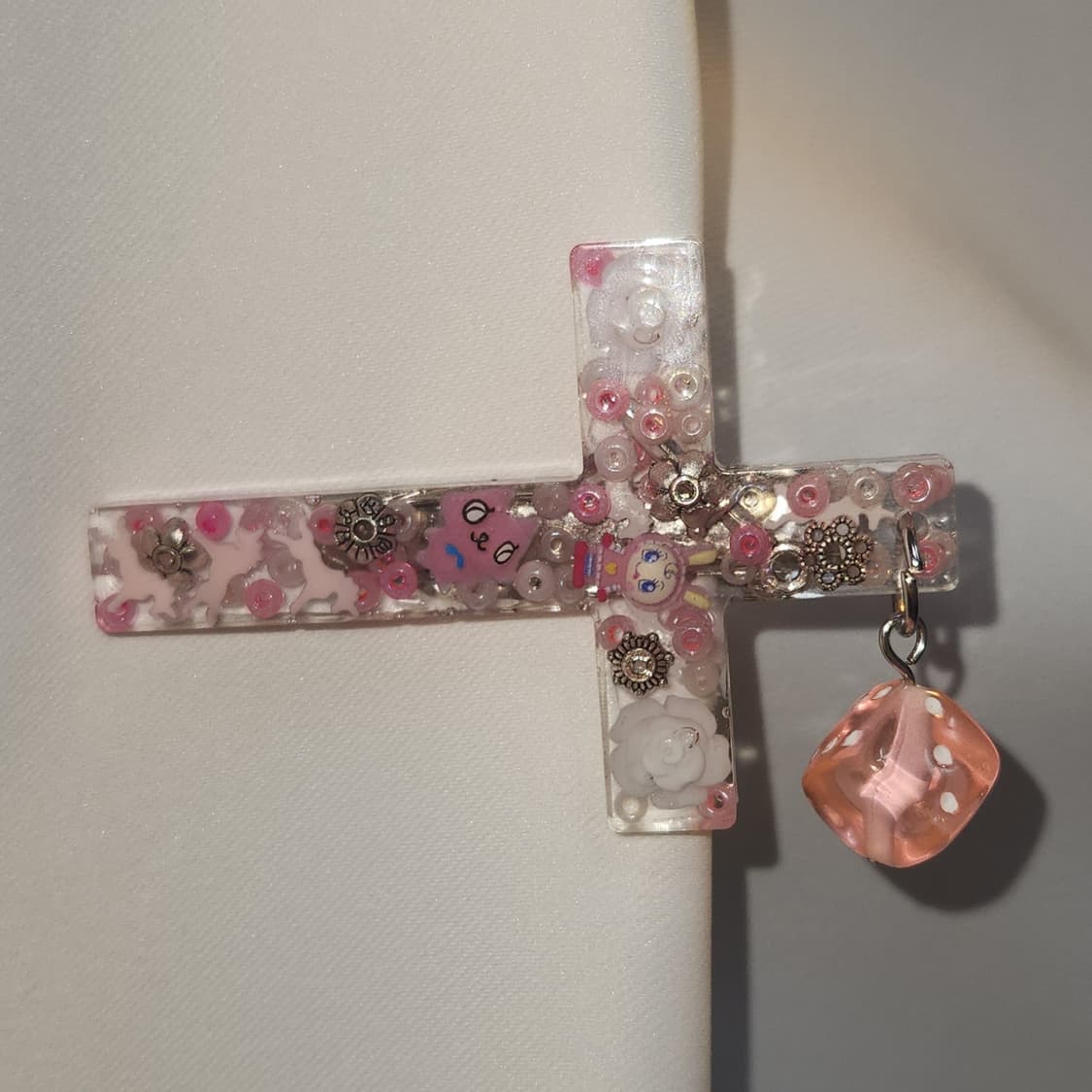 ☎️ 십자가 머리핀 🩷 유니콘, 캐릭터 파츠, 장미, 주사위가 들어 있습니다.