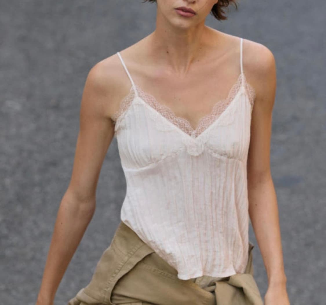 H&M 브로드리 앙글레즈 화이트 러플 슬리브리스 탑 S