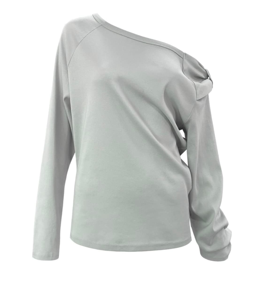 체메씨 보우 원 숄더 롱 슬리브 라이트그레이