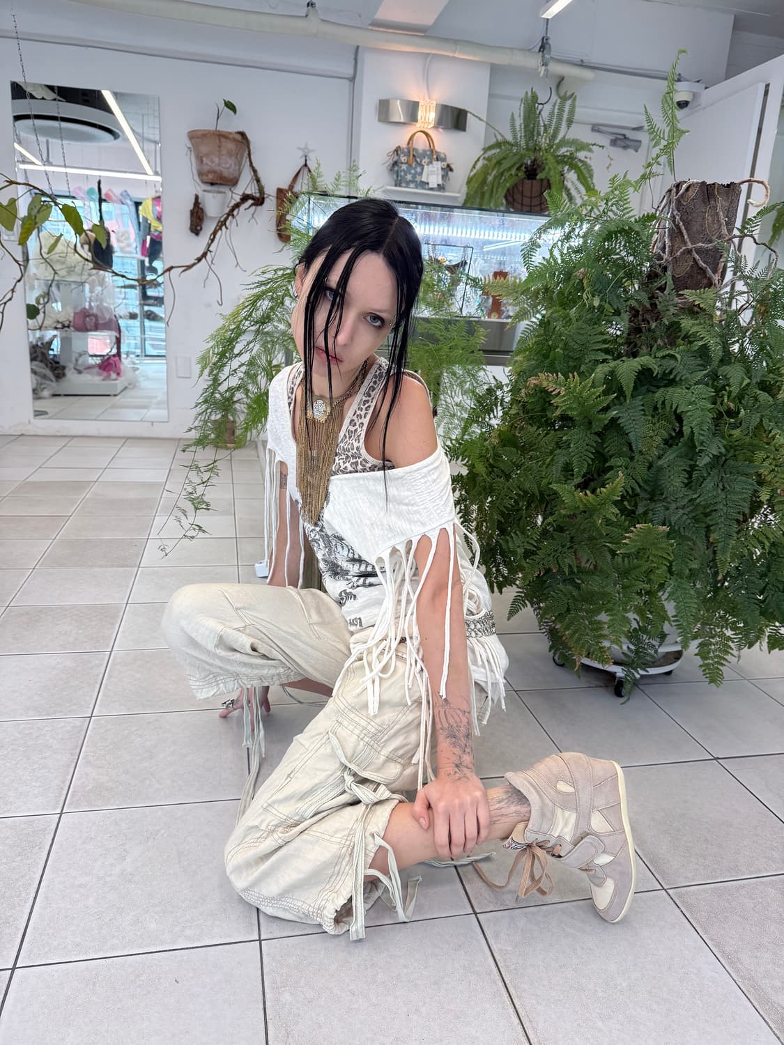 무료배송 서비스를 제공합니다. A-신품 또는 미사용에 가까운 상태 B-눈에 띄는 상처나 얼룩이 없는 상태 C-약간의 상처나 얼룩이 있는 상태 D-사용감이 많거나 얼룩 또는 상처가 많은 상태 · Conditon C · Linen 100% · Waist41/Rise21/Thigh26/Hem24/Length73 · 앞면 허벅지, 무릎 얼룩 · Model 172/45
