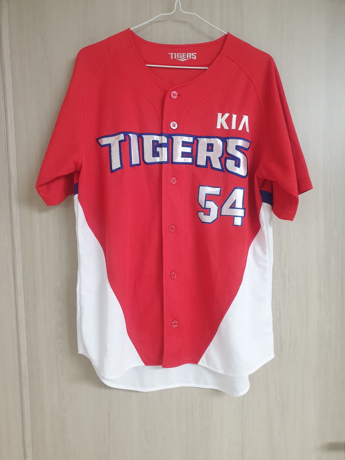 기아 타이거즈 양현종 선수 유니폼이에요 선명한 빨간색과 흰색의 조화가 멋스러워요 등판에는 양현종 선수 이름과 등번호 54번이 새겨져 있어요 야구 팬이라면 소장 가치가 높은 아이템이에요 사이즈 100 가슴반품 55 총장 76 상태좋아요 모든 거래는 교환 환불 불가합니다. 신중거래 부탁드려요^^ 직장인이라 문고리 거래 원해요.
