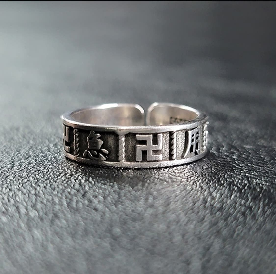 Banyahyeol 실버 흑도금 남자 빈티지 불교 피 부적 반지