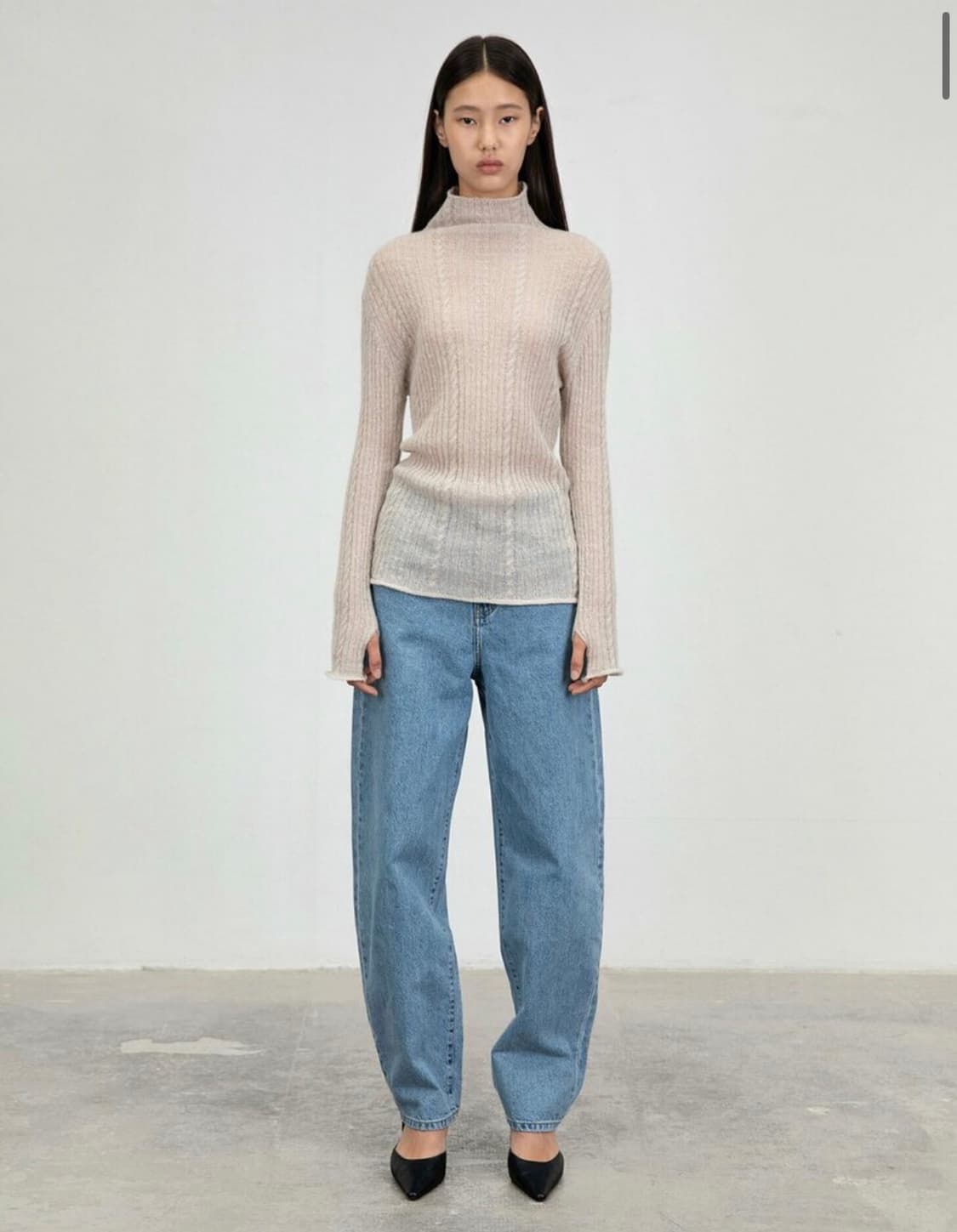 아모멘토 커브드 심 데님 팬츠 XL