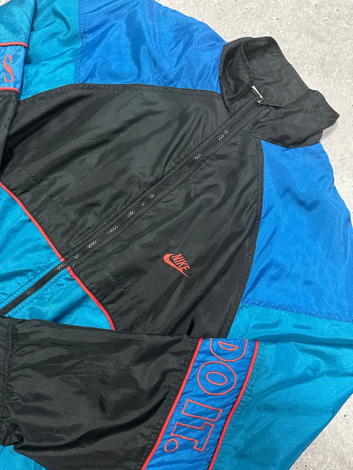 90년대 나이키 바람막이 자켓입니다. 블랙, 블루, 아쿠아 색상 조합이 예뻐요. 소매에는 "DO IT" 프린팅이 포인트로 들어가 있습니다. Size (실측 기준 2XL 루즈 / 3XL 정핏) 가단 68 어깨 (레글런) 팔길이 83 총장 68 ⚓️ 3개 이상 구매 시 할인 적용됩니다. ⚓️ 실측기반1~2cm차이날수도 있습니다 ⚓️ 빈티지 특성상 교환 및 환불은 어렵습니다. ⚓️ 미처 확인하지 못한 미세한 하자 및 오염이 있을 수 있습니다.