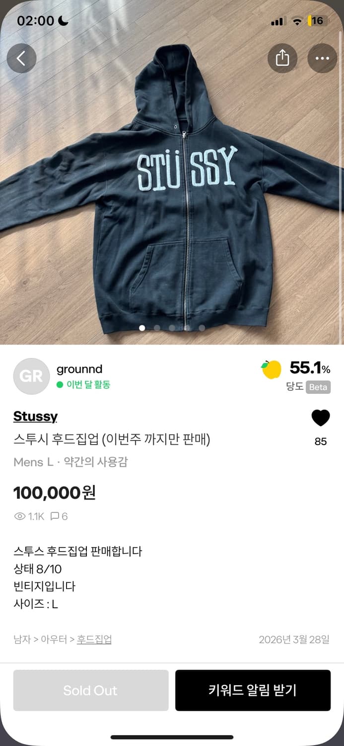 [m] 스투시 스탁 서울 후드 집업 블랙