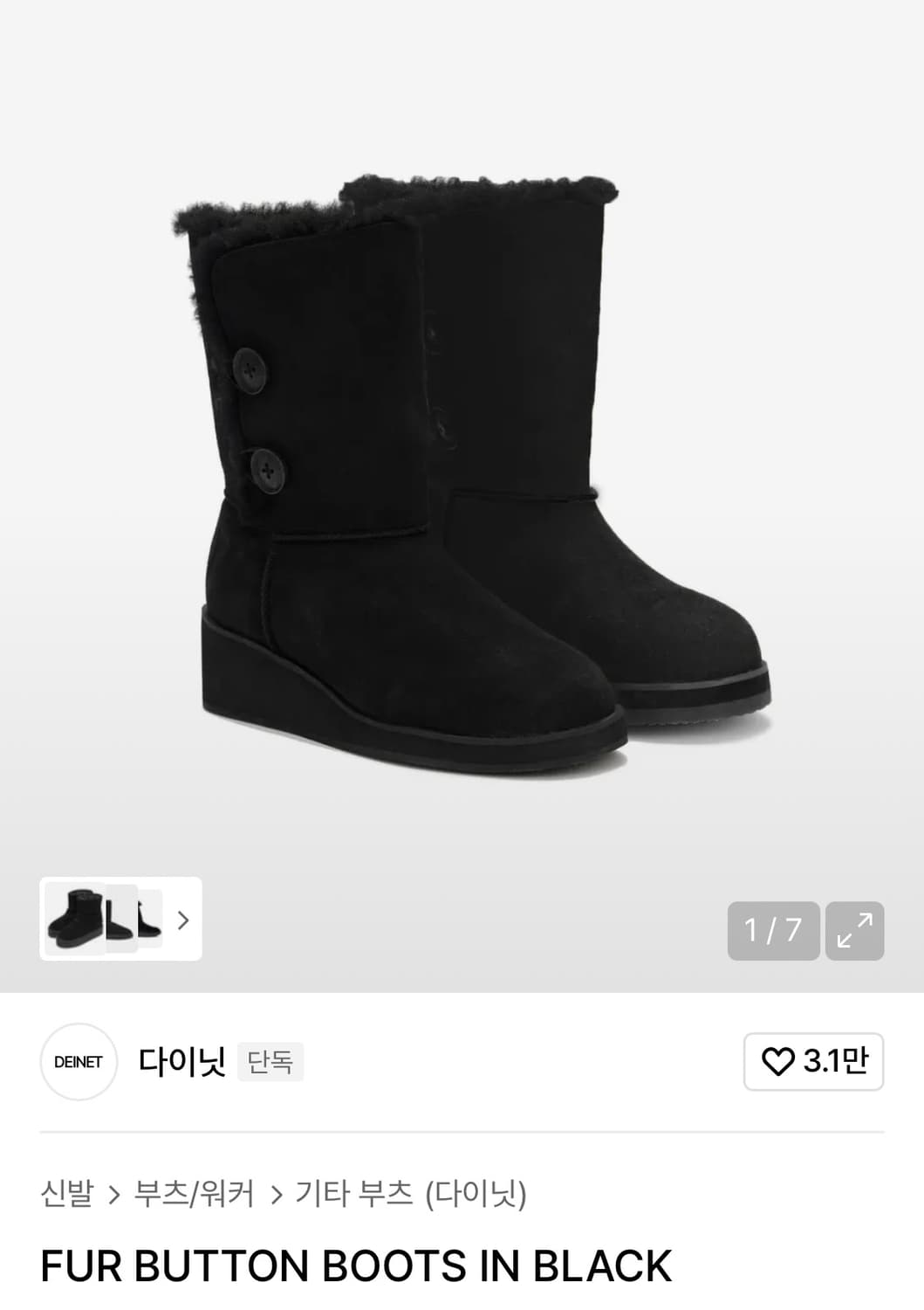 다이닛 FUR BUTTON BOOTS IN BLACK