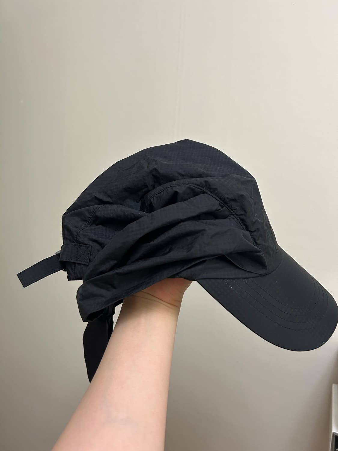 오호스 드레이프 모자 스카프 베일 울 캡 블랙