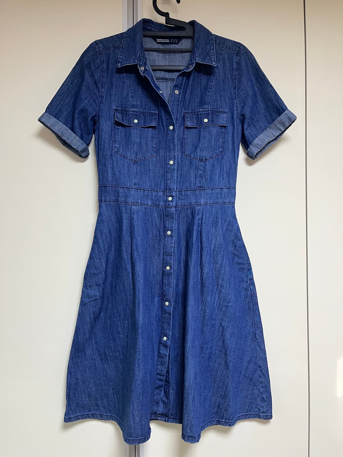 ZARA 데님 원피스 S 사이즈 양쪽 주머니가 있어 실용적이고, 똑딱이 단추입니다. 상태는 사진 참고해주세요! *중고거래 특성상 환불불가 입니다 :)