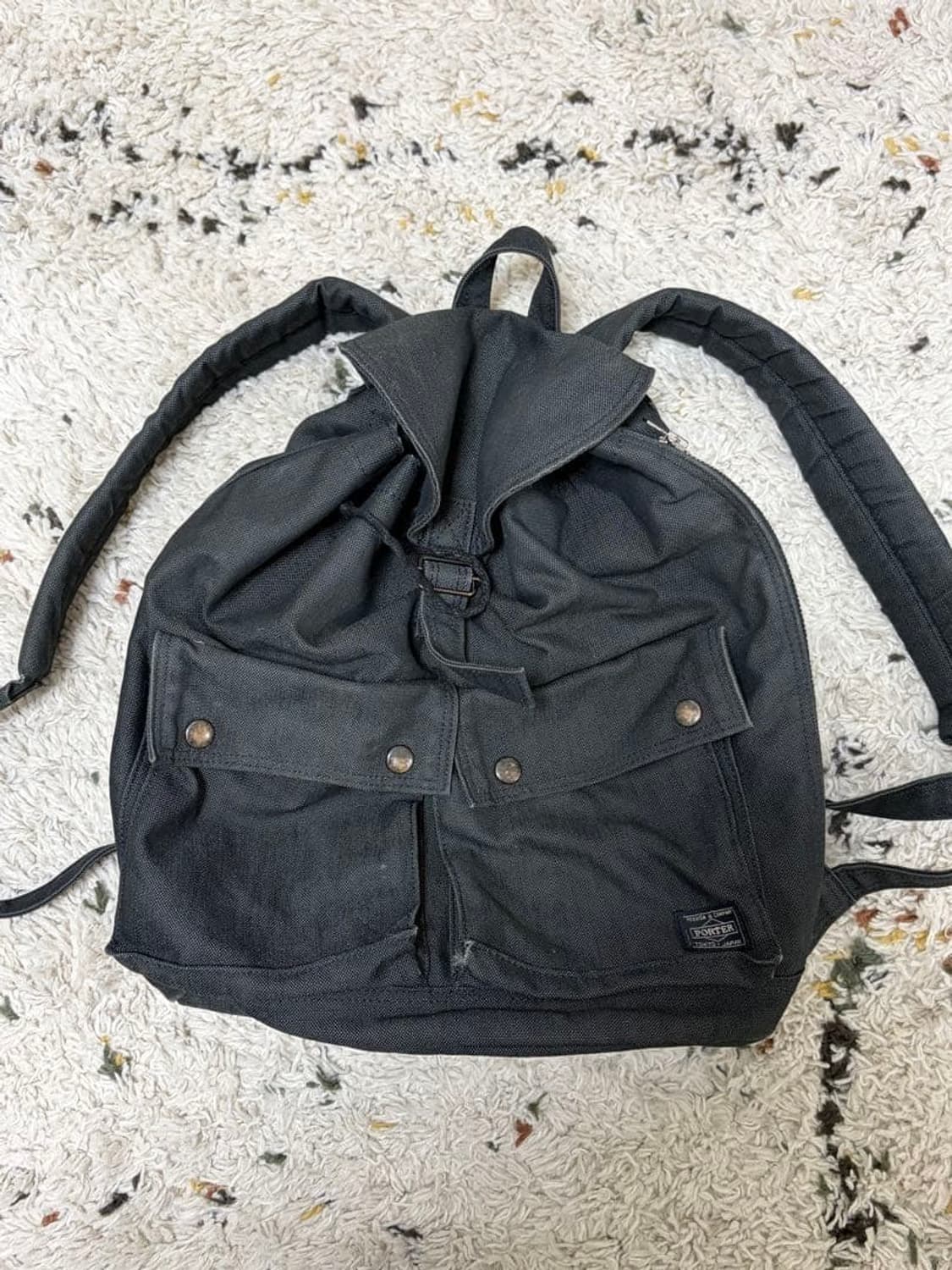 요시다 포터 생지 데님 백팩 팝니다! 흰색 반팔에 청바지와 함께 입으면 첫사랑룩 완성입니다~! 생활감 존재하고, 사진에 살짝 까진게 보이는 부분 감안해서 싸게 올립니다!