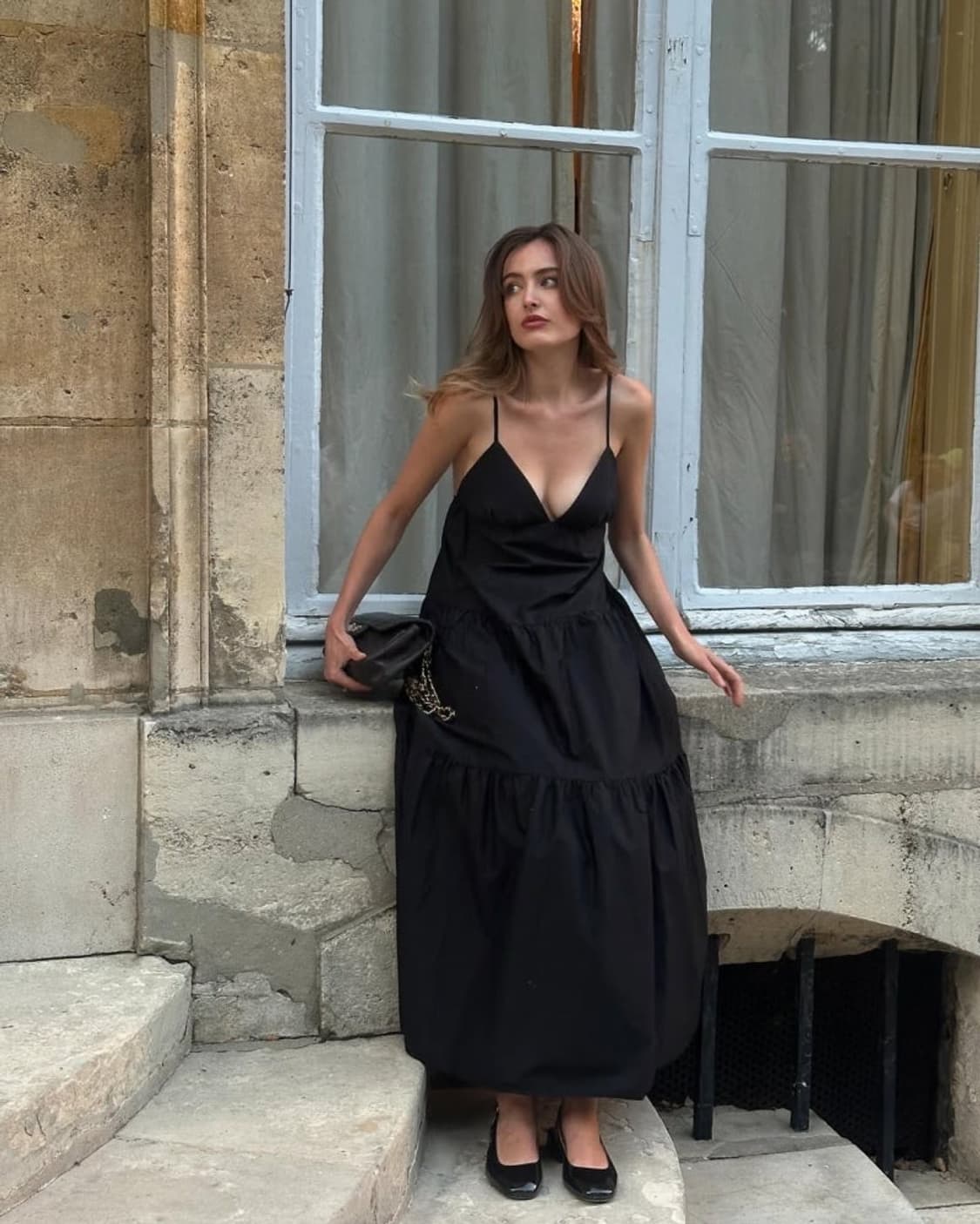 오버듀플레어 블랙/핑크 실크 프릴 드레스